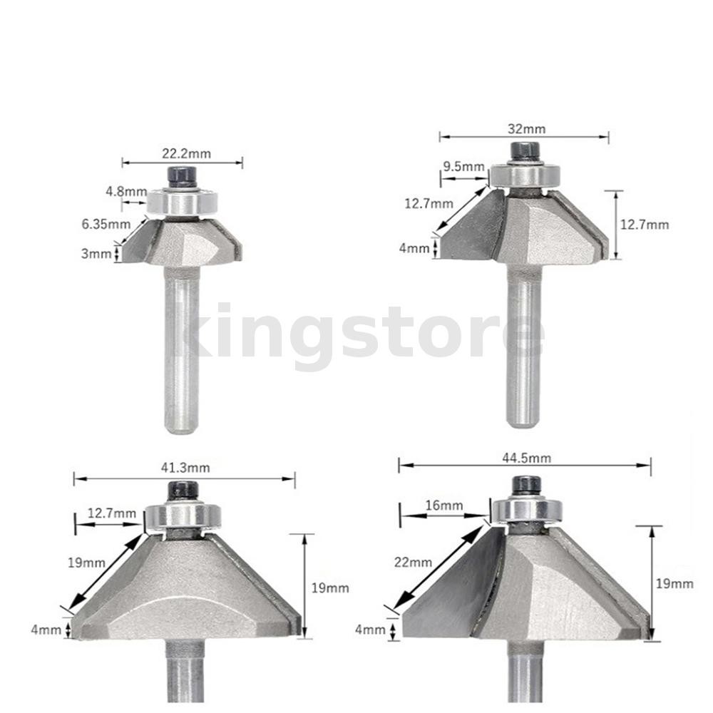 4PCS 45 Degree Chamfer Router Bit Set 1/4" Shank Carbide Tipped 1/4" 1/2" 3/4" 7/8" Bevel Length for Edge Profiling Woodworking