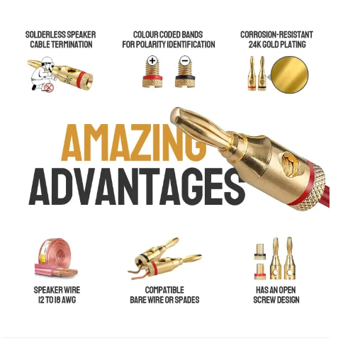 4PCS Gold Plated Musical Speaker Cable Wire Screw Metal Banana Plug Connector Open Scre