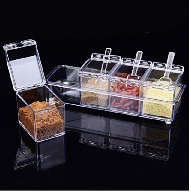 4PCS Seasoning Box Multi-purpose Condiment Box with Spoons