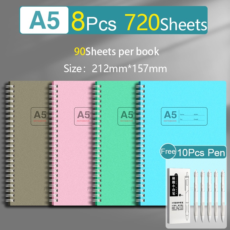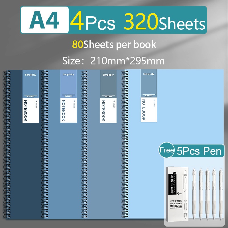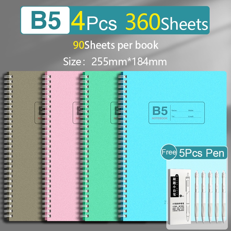 4PCS/Set 360Sheets A5/B5 Size Spiral Notebooks Korean Style Office High School Wholesale Coil Spiral Notebook