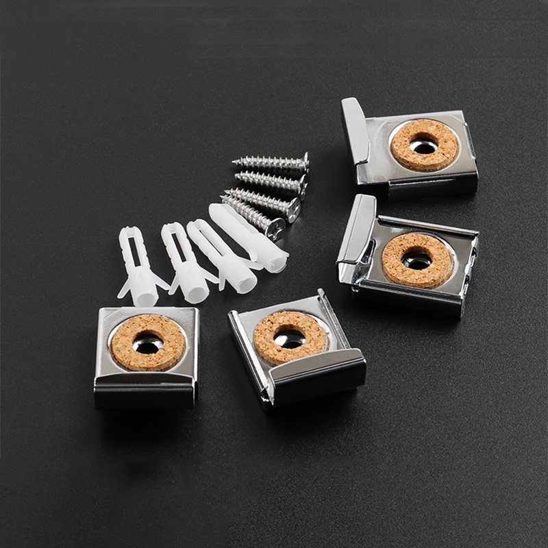 4PCS/Set Glass Shelf Bracket Mirror Holder Spring Loaded Adjustable Mirror Clamps