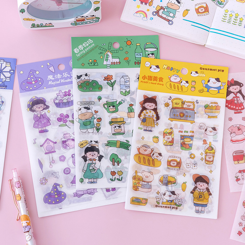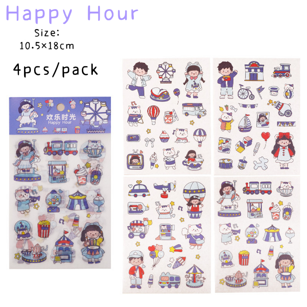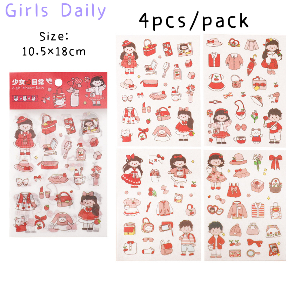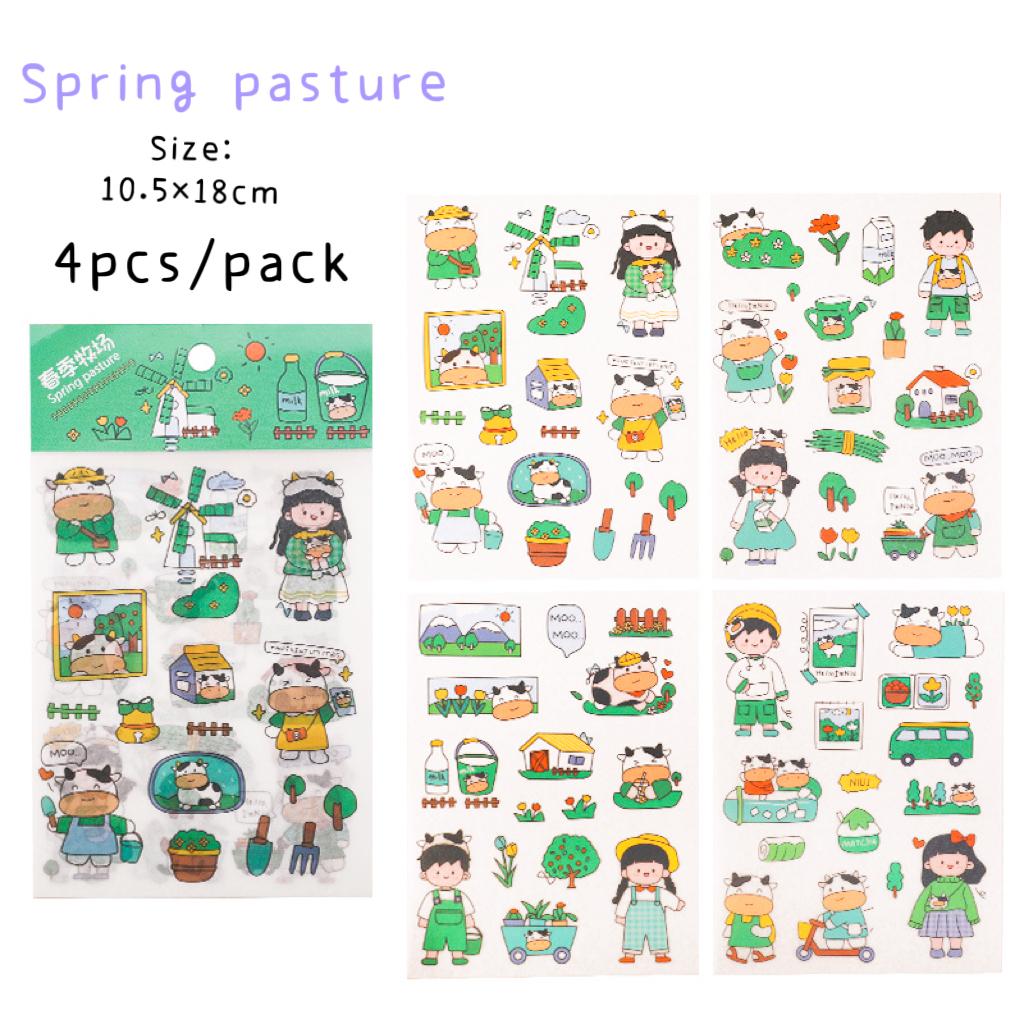 4PCS/pack Ins Cartoon Cute Creative Stickers Decorative Materials Cute DIY Handbook Sticker