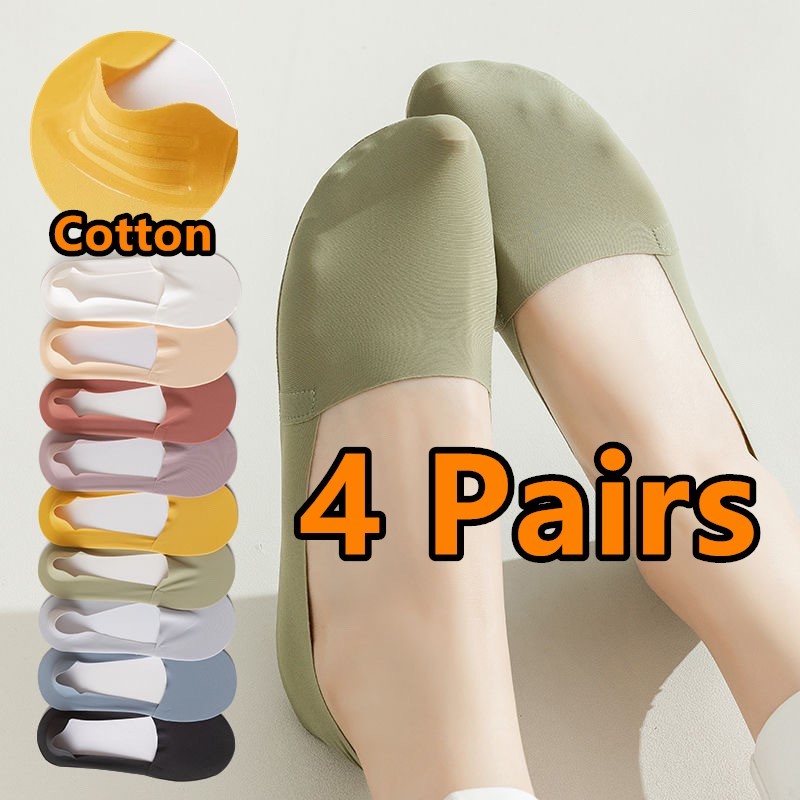 4Pairs Anti Slip Ankle Socks For Women Invisible Medyas Socks Foot Socks Set Black Anti Slip Socks