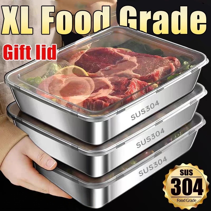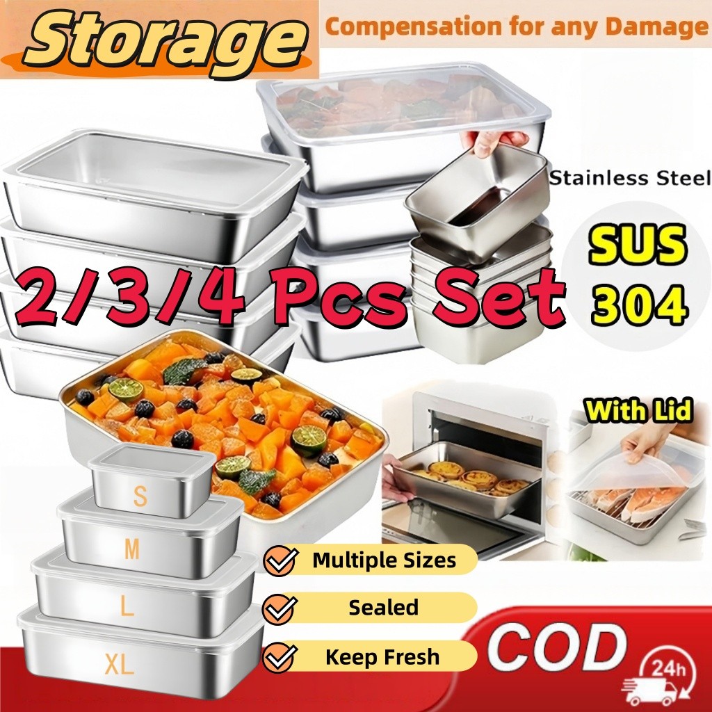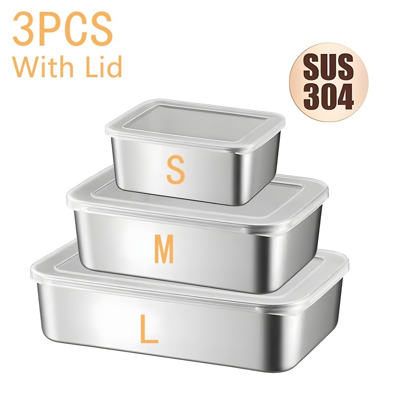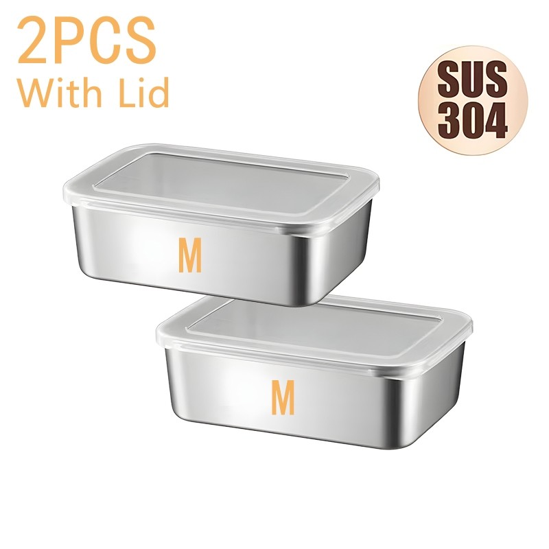 4Pcs 304 Stainless Steel Storage Box Kitchen Fresh-keeping Box with Lid Refrigerator Fruit Container