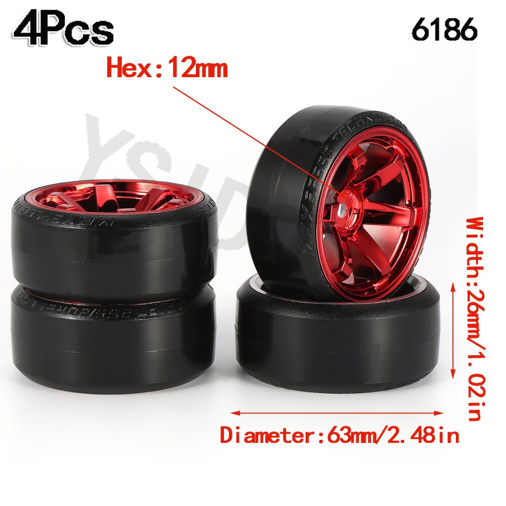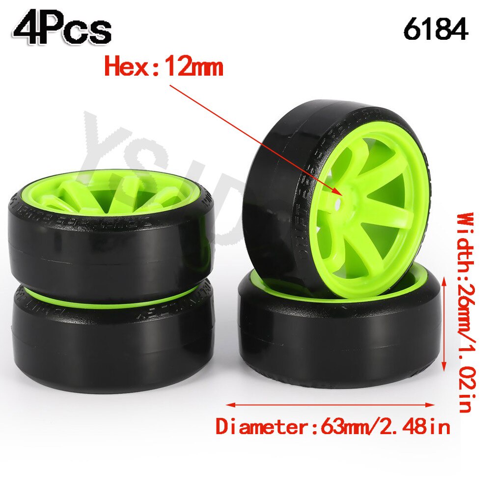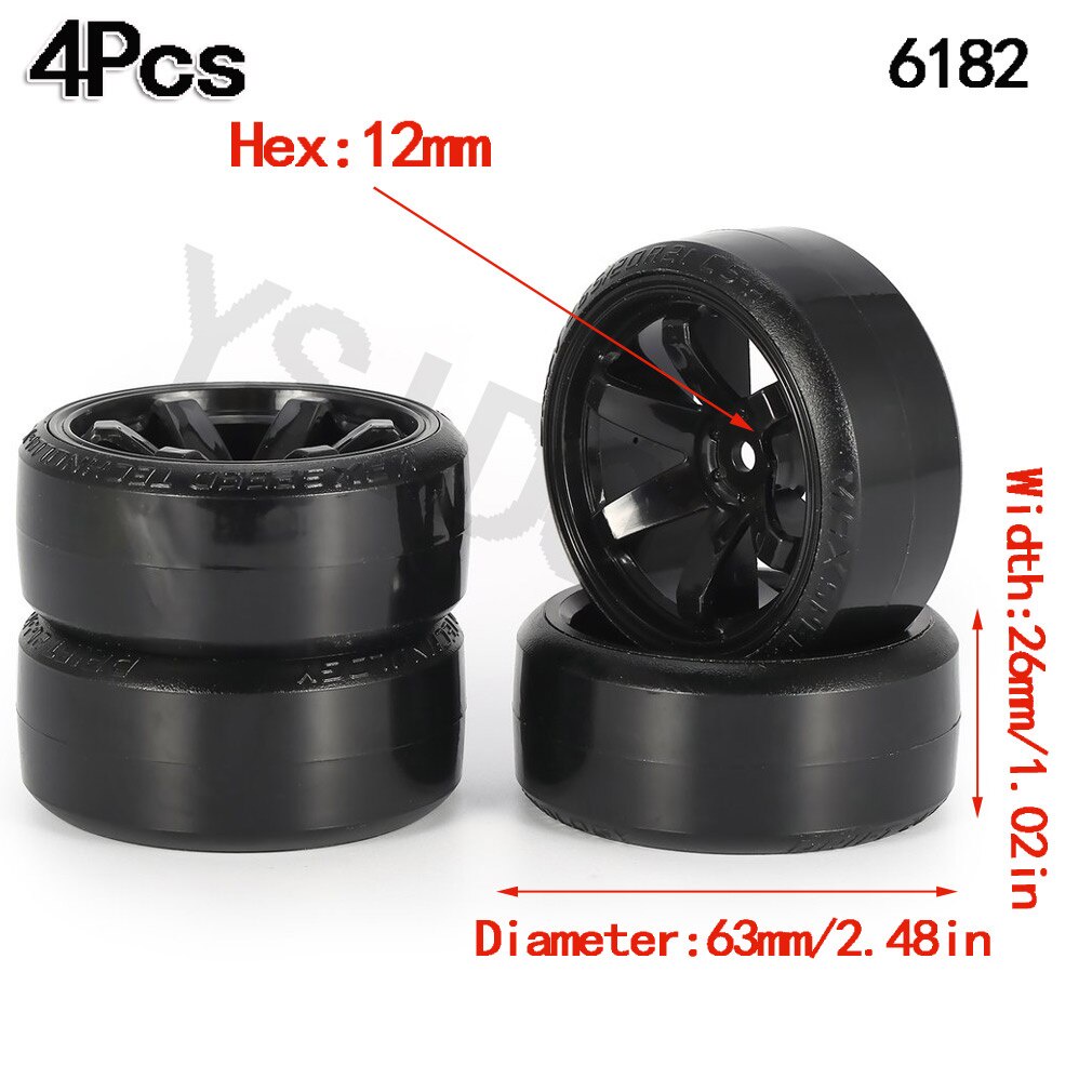 4Pcs 63mm 1/10 RC Drift Car Tire Wheel Rim Hard Wheel Tyre for Traxxas HSP Tamiya HPI Kyosho On-road Drifting Car RC Vehicle