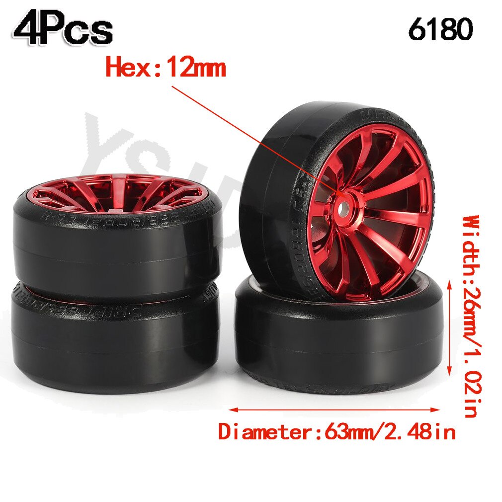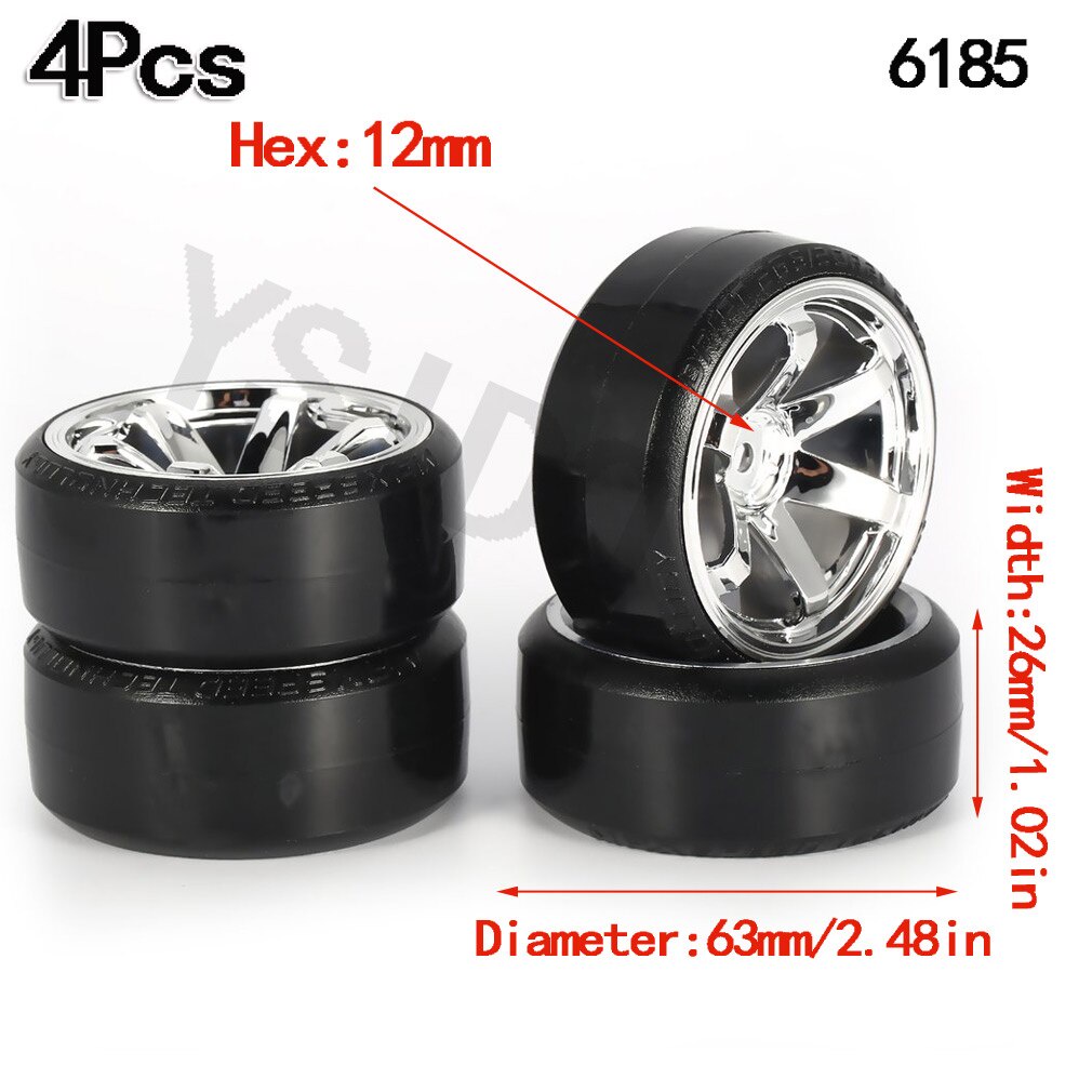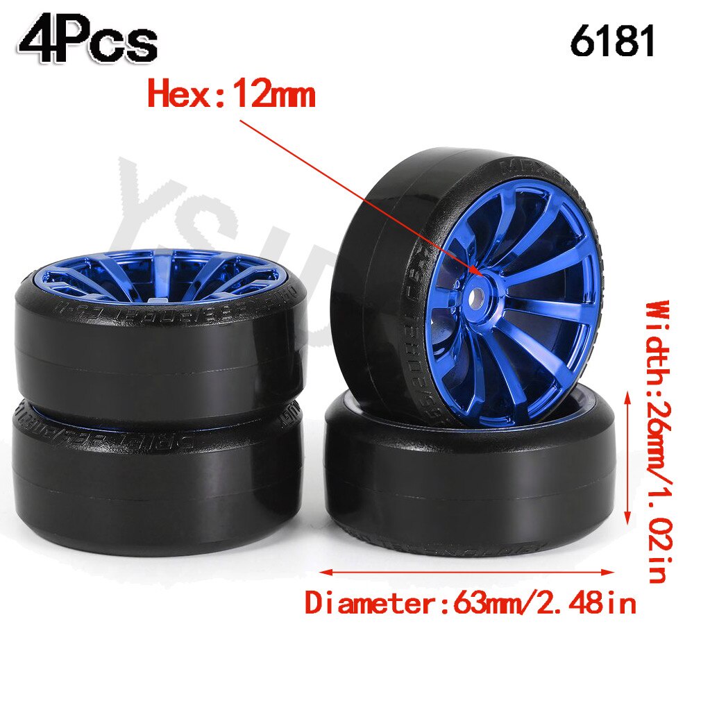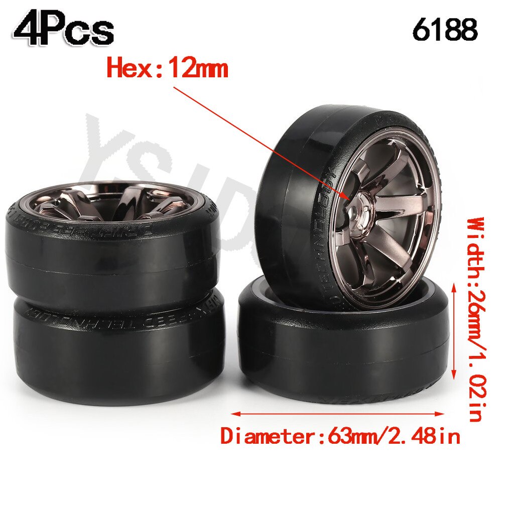 4Pcs 63mm 1/10 RC Drift Car Tire Wheel Rim Hard Wheel Tyre for Traxxas HSP Tamiya HPI Kyosho On-road Drifting Car RC Vehicle