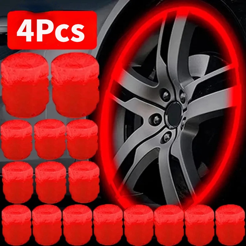 4Pcs Car Pink Red Luminous Tire Valve Cap/Bike Wheel Hub Glowing Valve Cover Tire Decoration