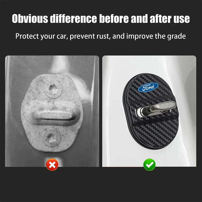 4Pcs Carbon Fiber Pattern Car Door Lock Protective Cover Door Protective Pad Door Shock Absorption Protective Pad Door Cushion Door Lock Shock Absorber Silent for Ford Ranger Raptor Territory Focus Fiesta Everest Escape Mustang Ecosport Explorer