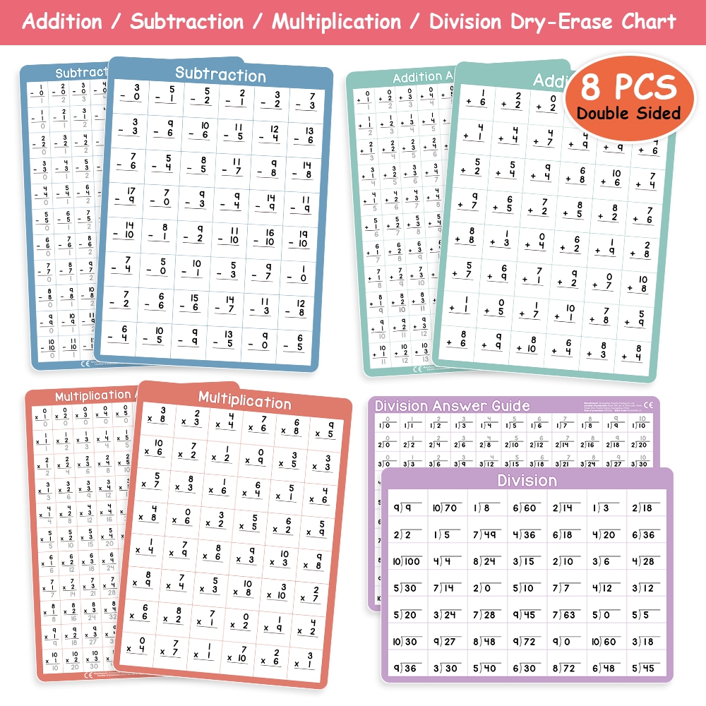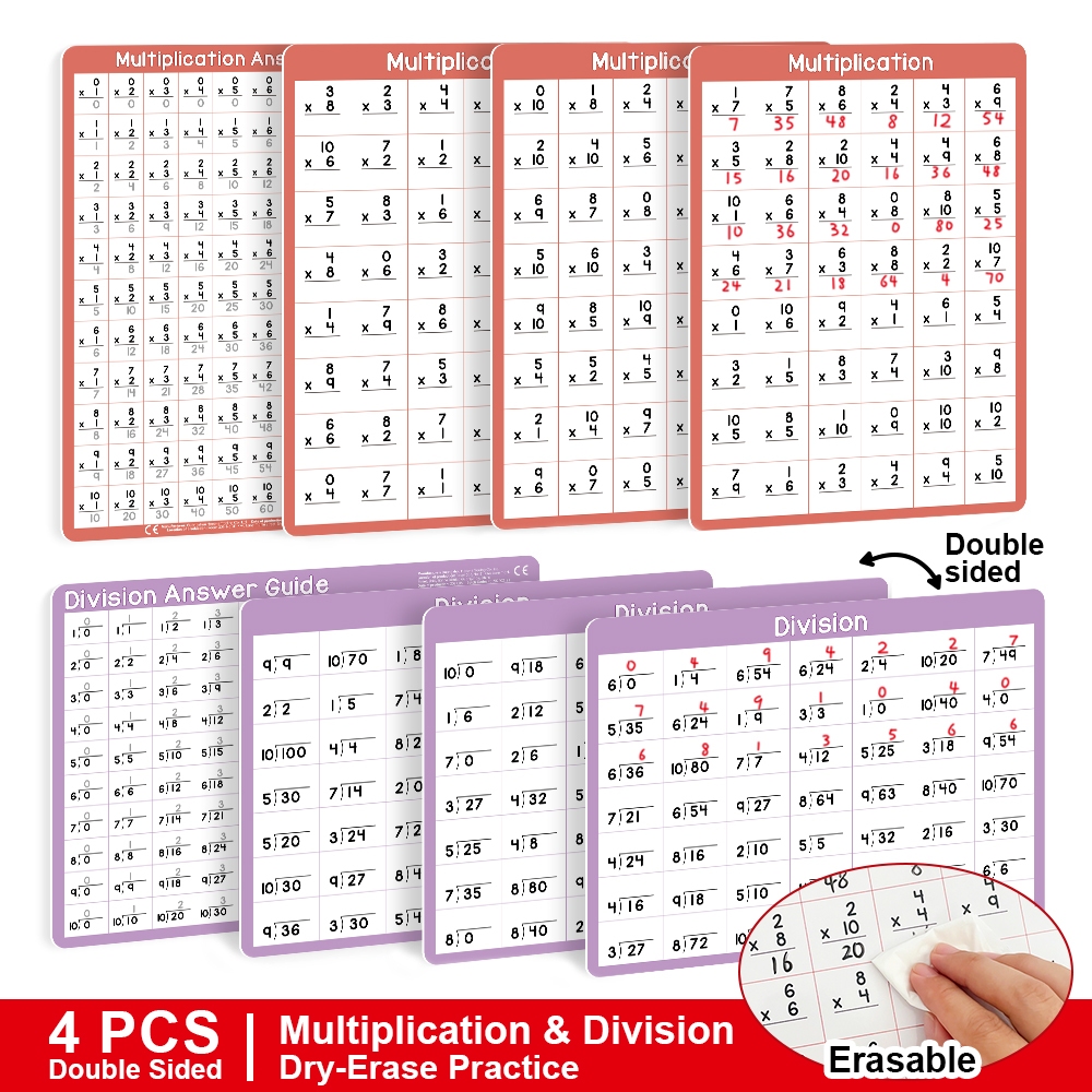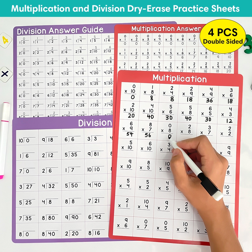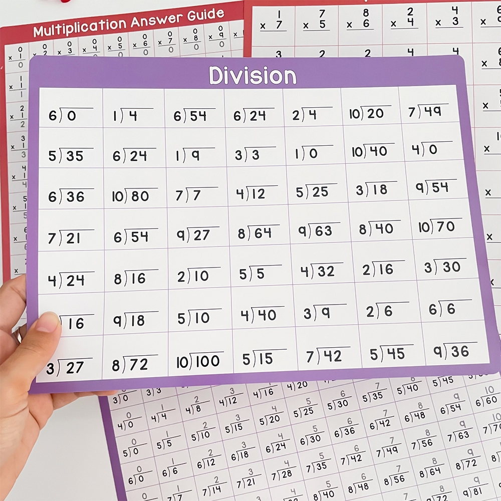 4Pcs Multiplication Division 0-10 Math Learning Chart for Kids Mathematical Educational Poster