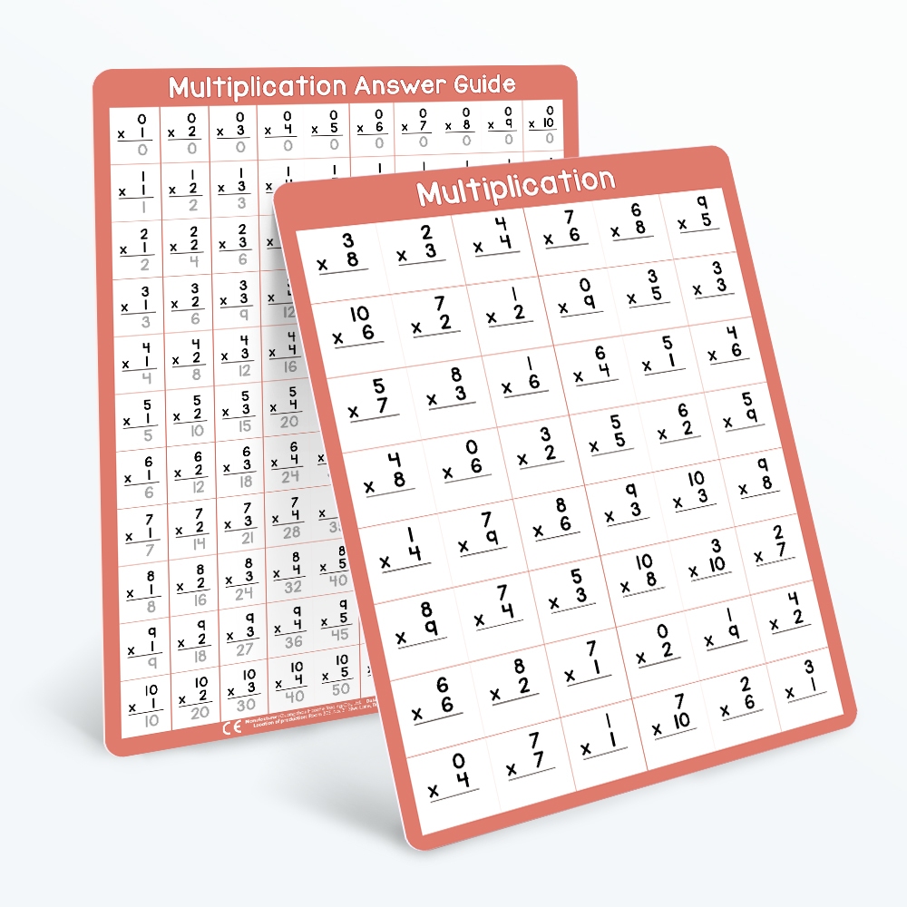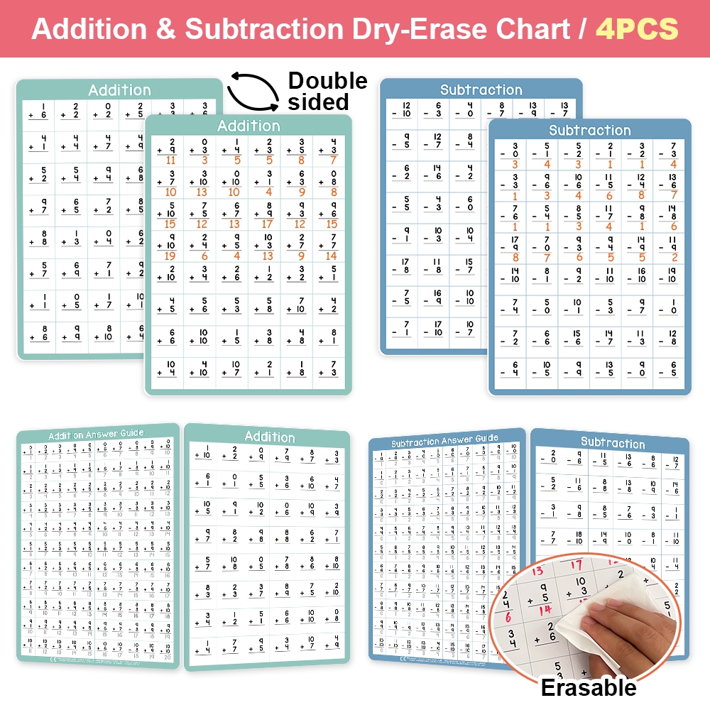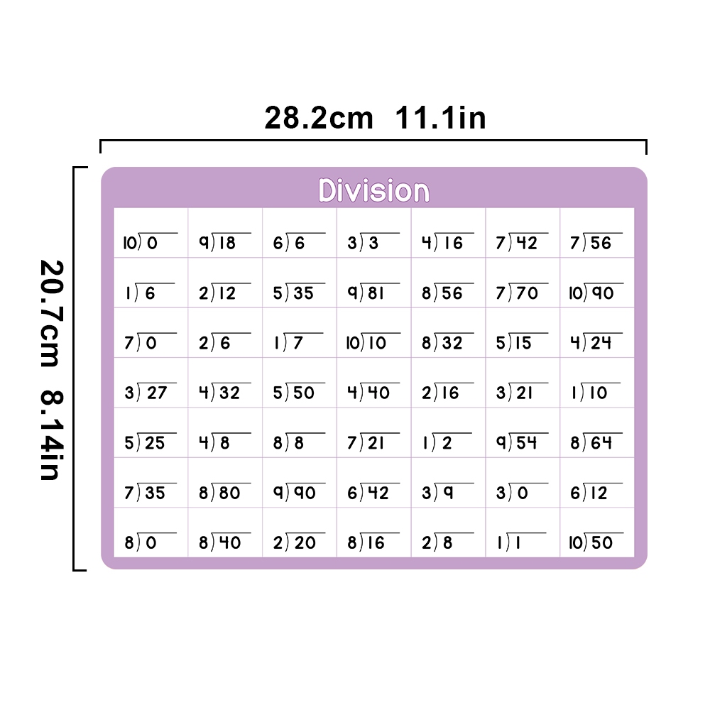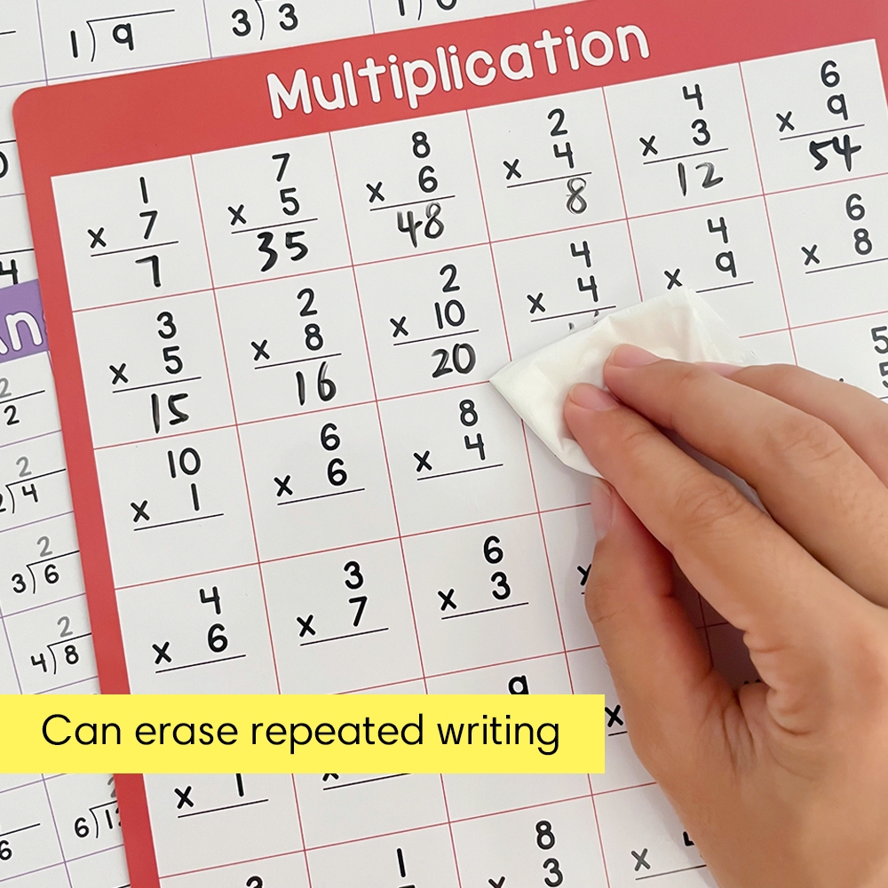 4Pcs Multiplication Division 0-10 Math Learning Chart for Kids Mathematical Educational Poster