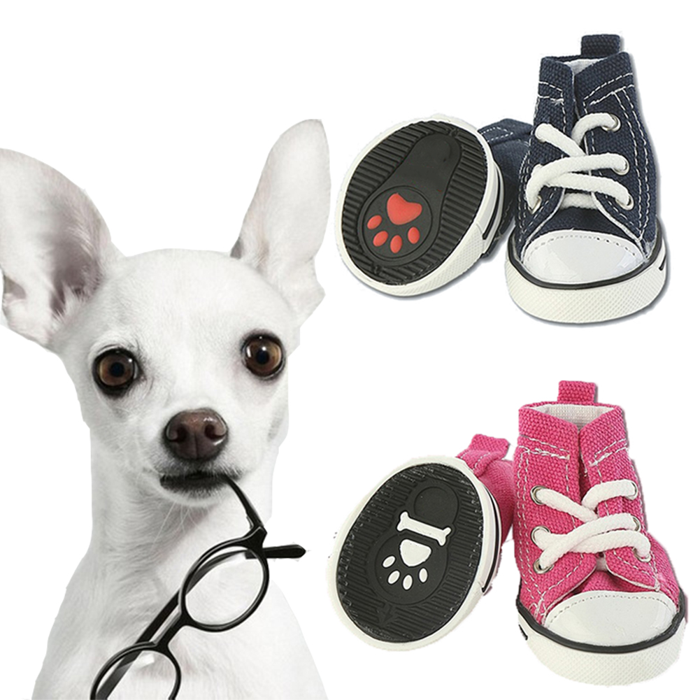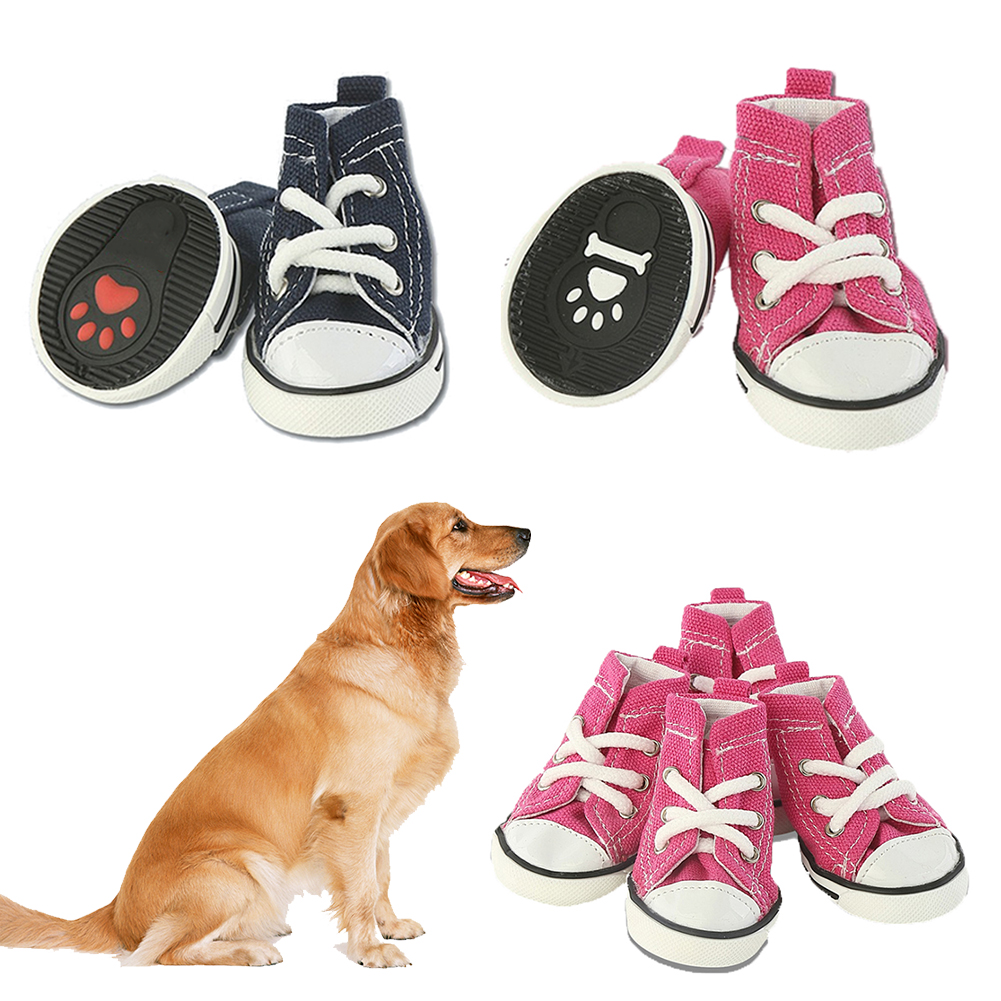 4Pcs Puppy Pet Dogs Shoes Fashion Casual Shoes Sport Anti-slip Walk Canvas Shoes
