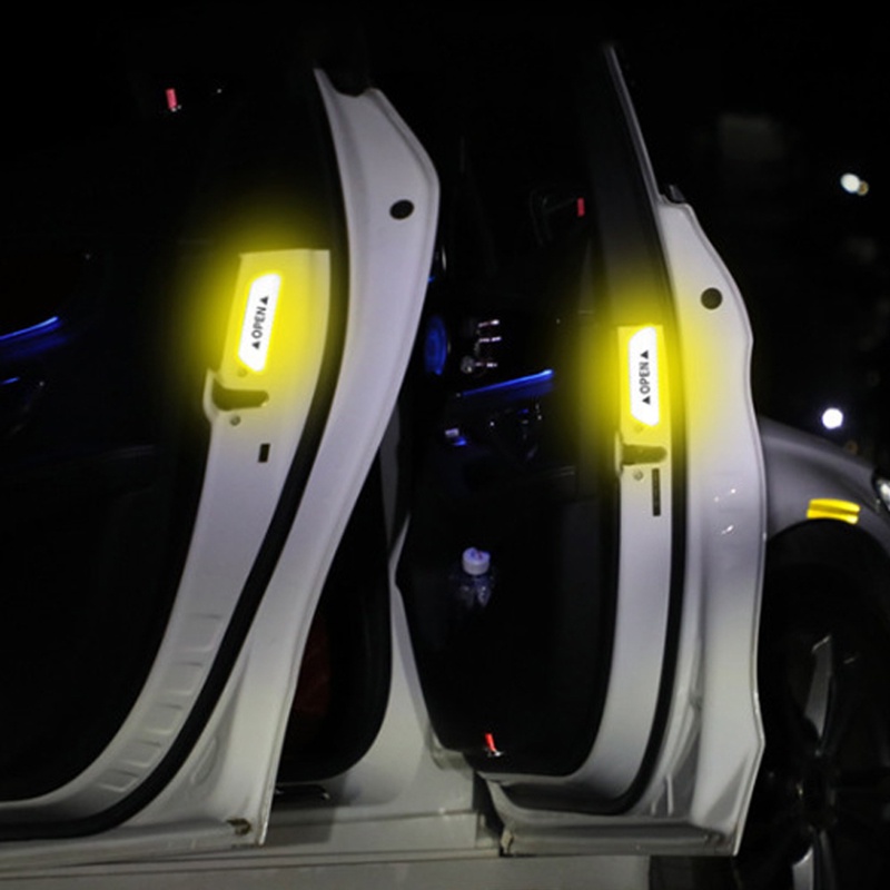 4Pcs Reflective Car Door Sticker Safety Opening Warning Reflector Tape Decal Auto Car Accessories Exterior Interior Reflector