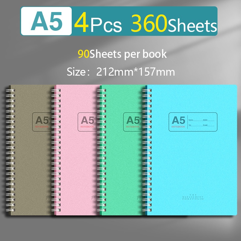 4Pcs/Set A5/B5 360 Sheets Coil Design Notebook Simple Art Style Spiral Notebook School Office Stationery Supplies
