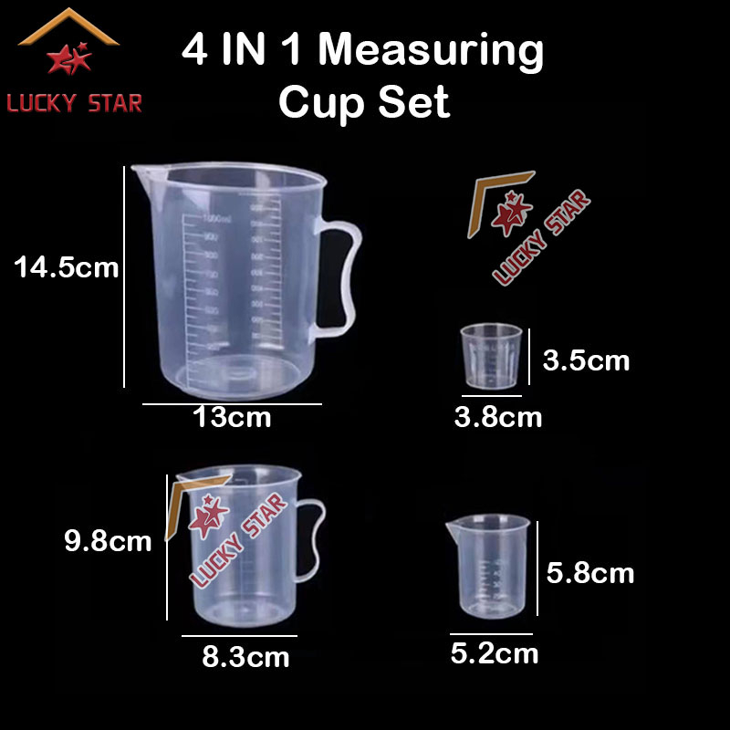 4Pcs Set Clear Measuring Cup For Liquid 20/50/300/1000ml Plastic Transparent Measuring Cups