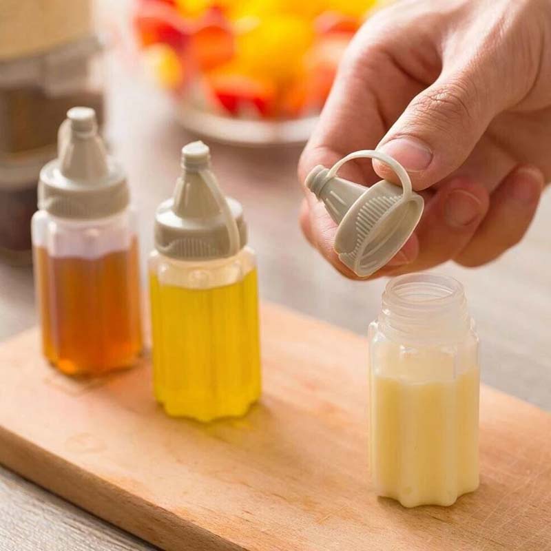 4Pcs/Set Portable Mini Sauce Seasoning Box Dispenser Transparent Spices Bottle With Lid Salt Spice Jar Squeeze Bottles