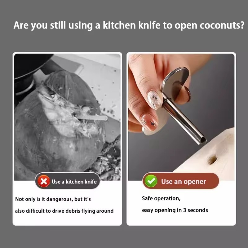 4Pcs Stainless Steel Coconut Opener - Durable Cut Hole Tool - Fruit Puncher - Professional Coconut Opening Tool - Kitchen Accessories - Fresh Coconut Quick Hole Punching Device