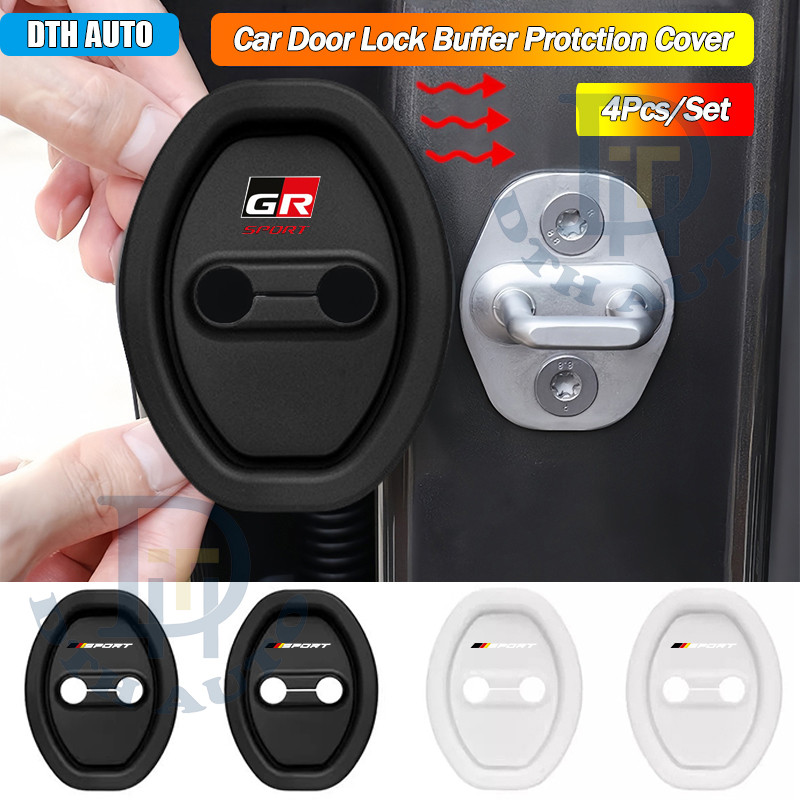 4Pcs Thickening Toyota GR Sport Silicone Car Door Lock Protection Cover Door Lock Shock Absorber Silent Accessories For Toyota Fortuner HiAce Yaris Corolla Altis Veloz RAV4 Camry