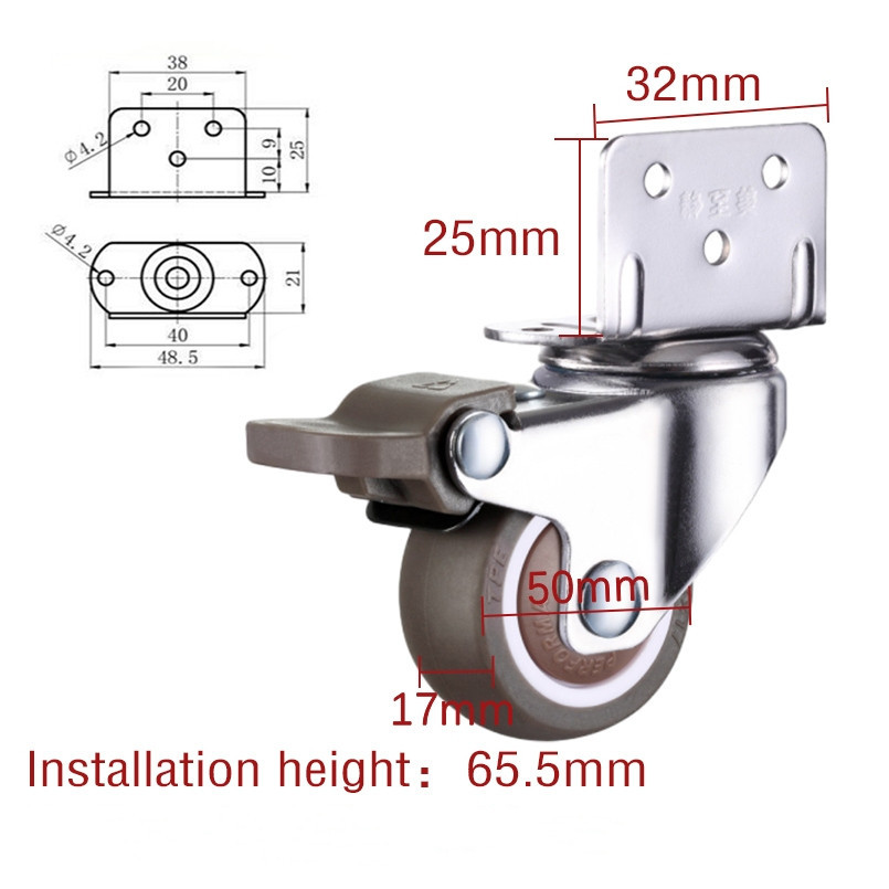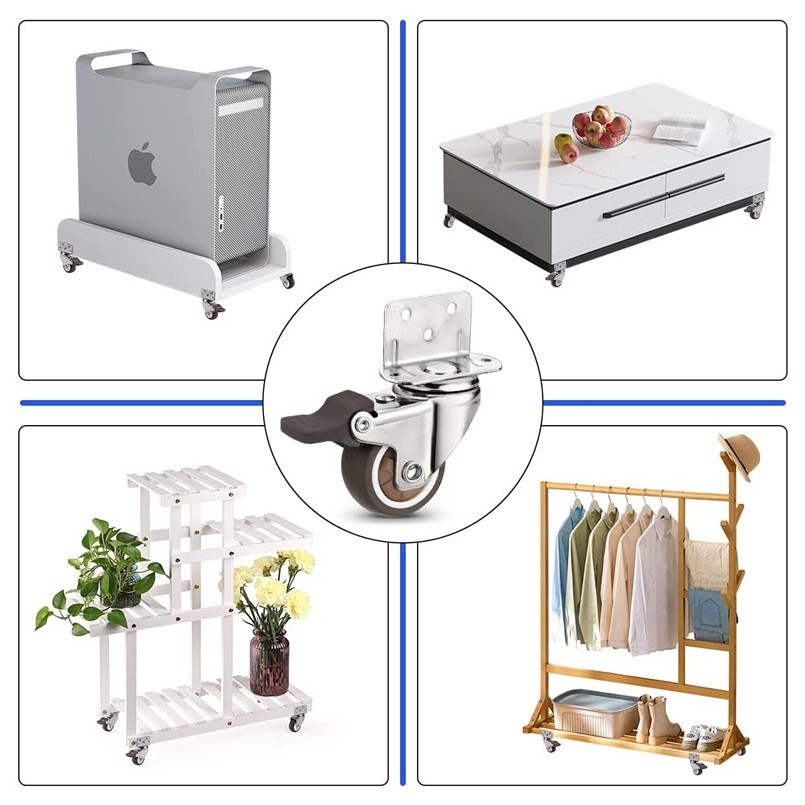 4Pcs Universal Soft Rubber L Type Swivel Caster Trolley Furniture Crib Wheels