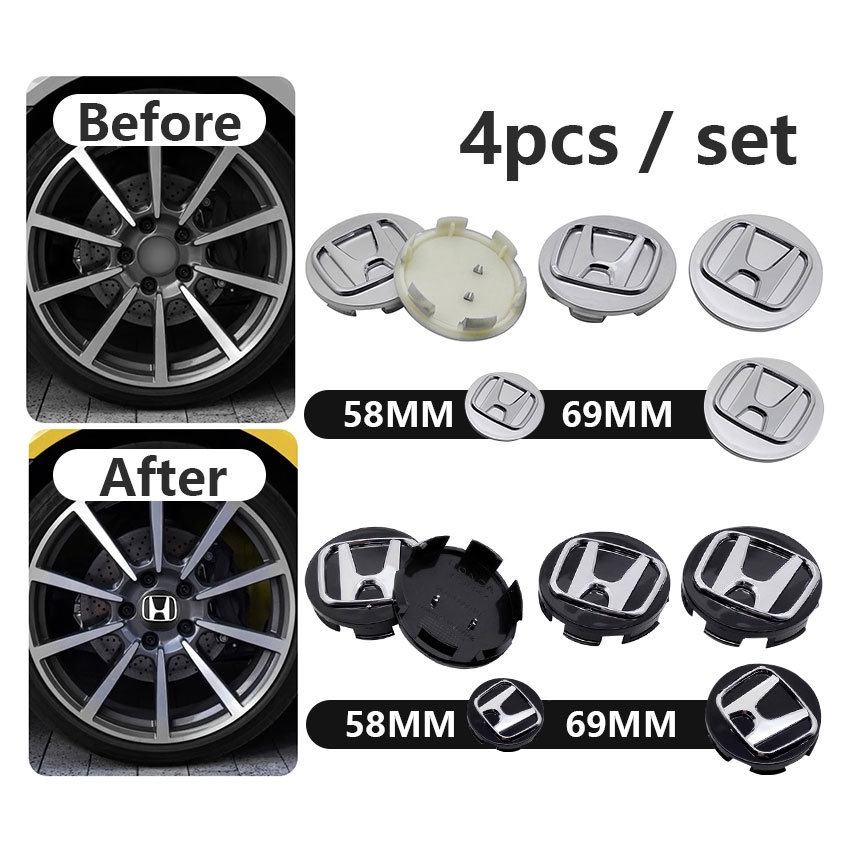 4Pcs/set Car Wheel Center Hub Caps 58/69mm 3D Honda Logo Badge Emblems for CRV Civic Accord Pilot