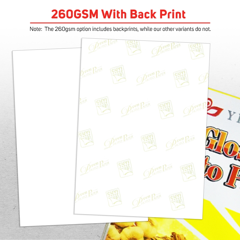 4R CUYI RC Glossy Photo Paper 260gsm Resin Coated Inkjet Paper (20sheets/pack)