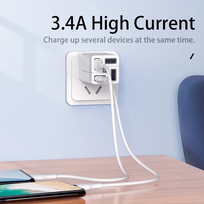 4USB Charger 3.4A US Plug Foldable Usb Adapter Smart Fast Charging For All Mobile Phones