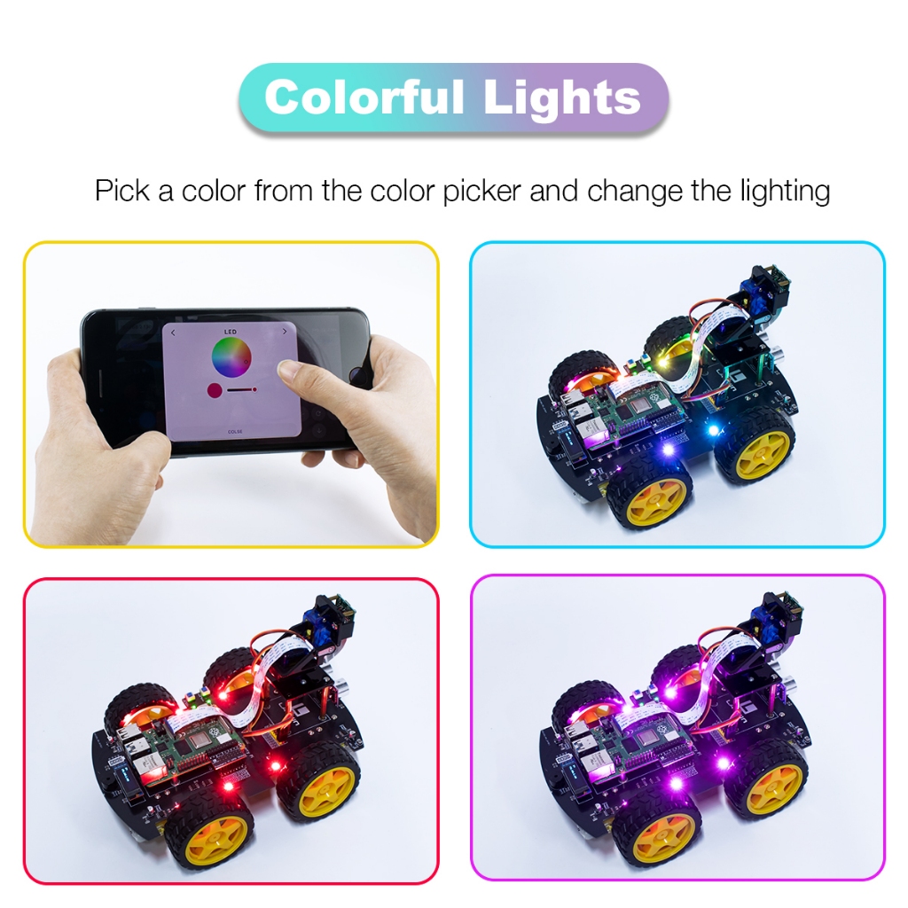 4WD Smart Car Kit for Raspberry Pi 5 4 B 3 B+ B A+, Camera, Face Tracking, Line Tracking, Light Tracing, Obstacle Avoidance, App Control(Raspberry Pi NOT Included)