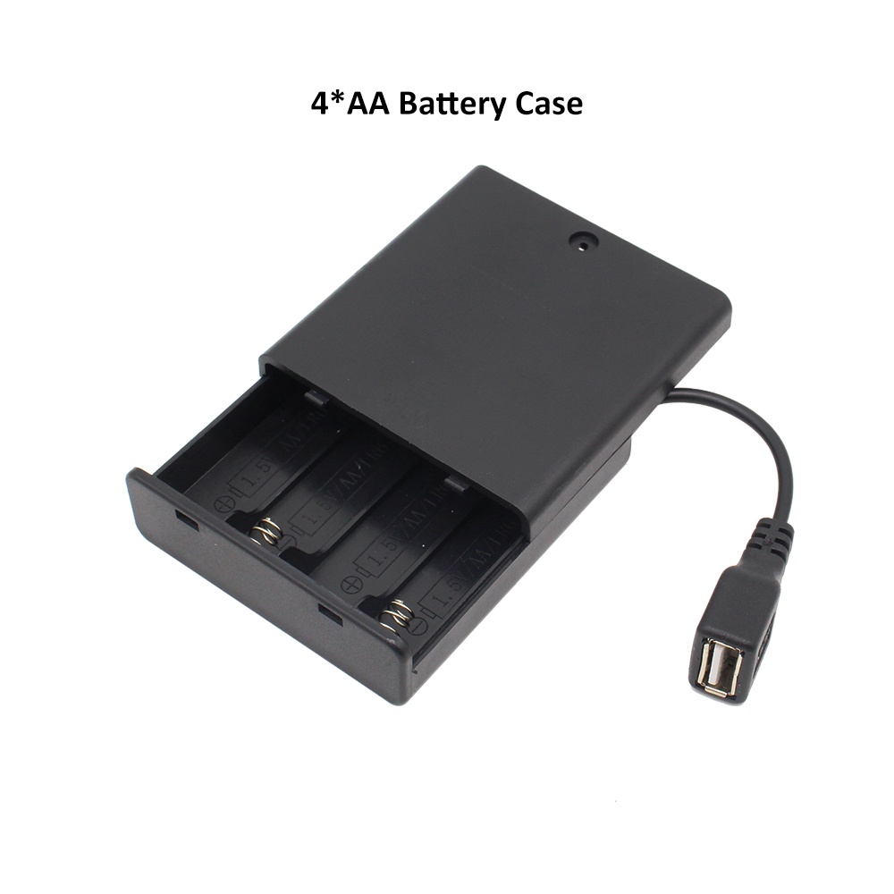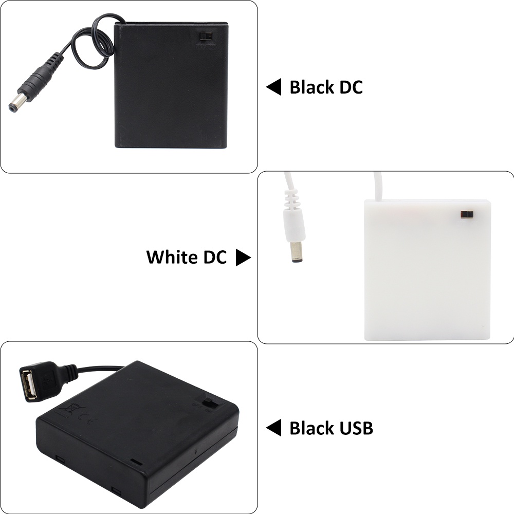 4X AA USB/DC Power Battery Box for LED Strip Lights Storage Case Holder LR6 Container with Wire Lead Cables 5V