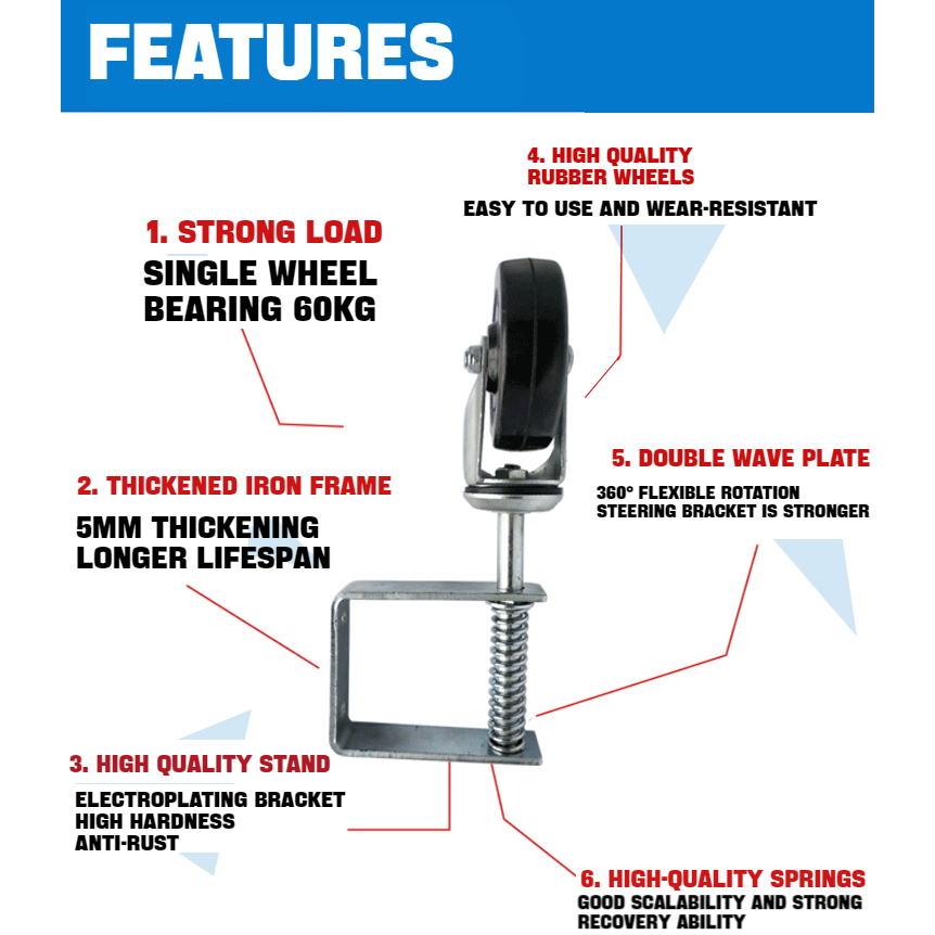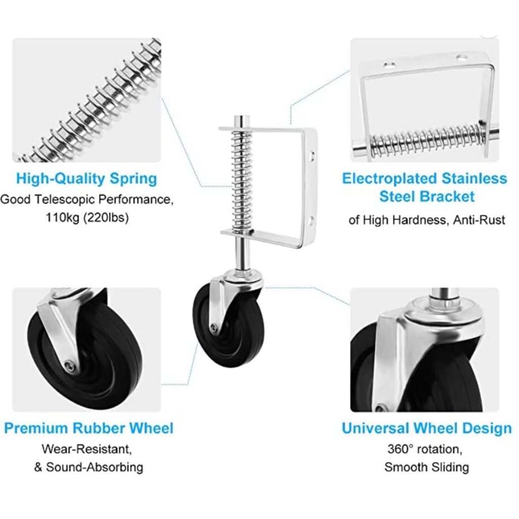 4inch Rubber Gate Caster Wheels Mute 100KG Load Capacity Spring Loaded Gate Door Wheel Caster Roller