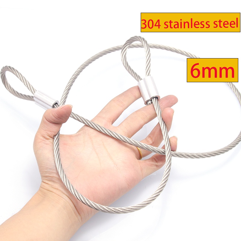 4mm5mm6mm8mm safety cable with loop 304 stainless steel wire rope tether safety steel cable