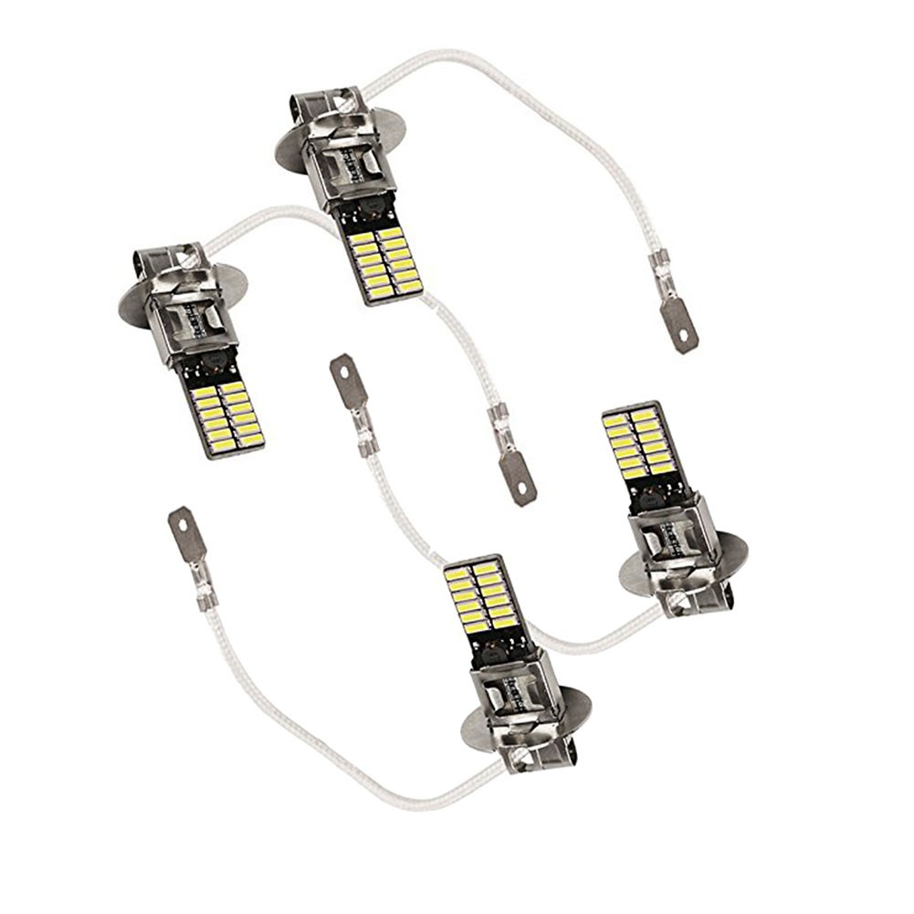 4pcs 12V H3 White 6500K 24-SMD 4014 LED High Power Bulb DRL Fog Light Driving Lamp