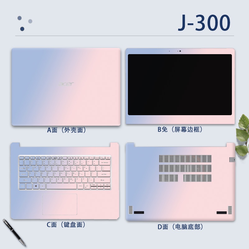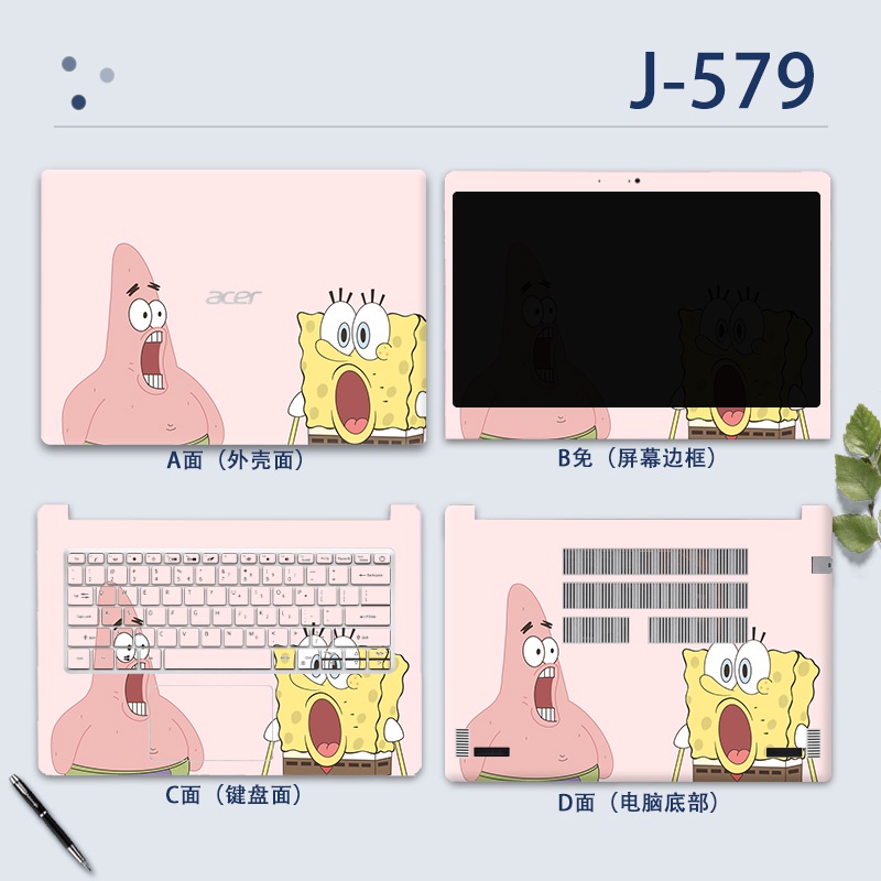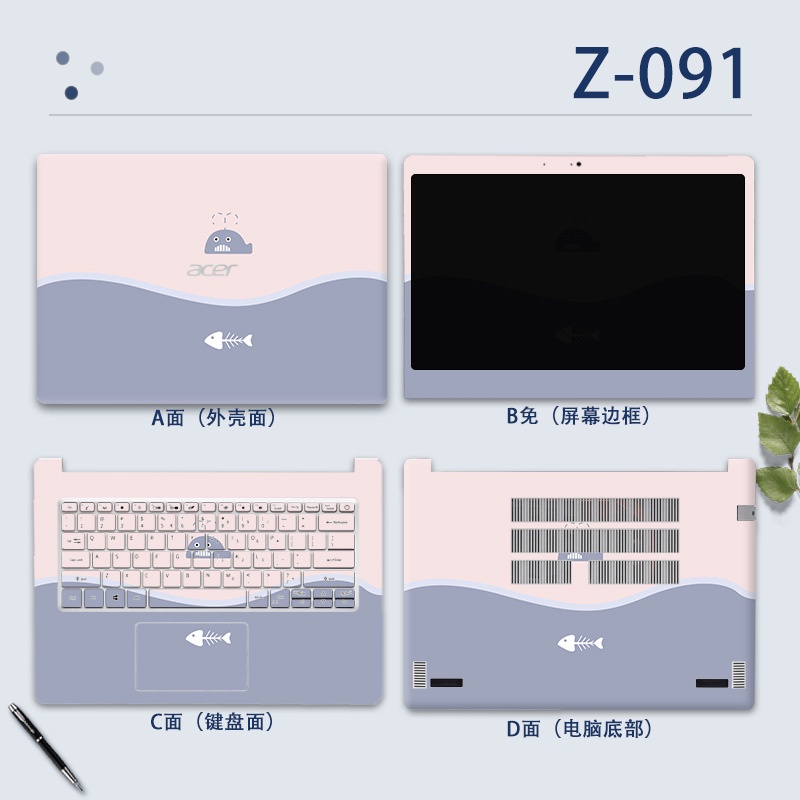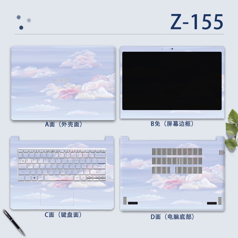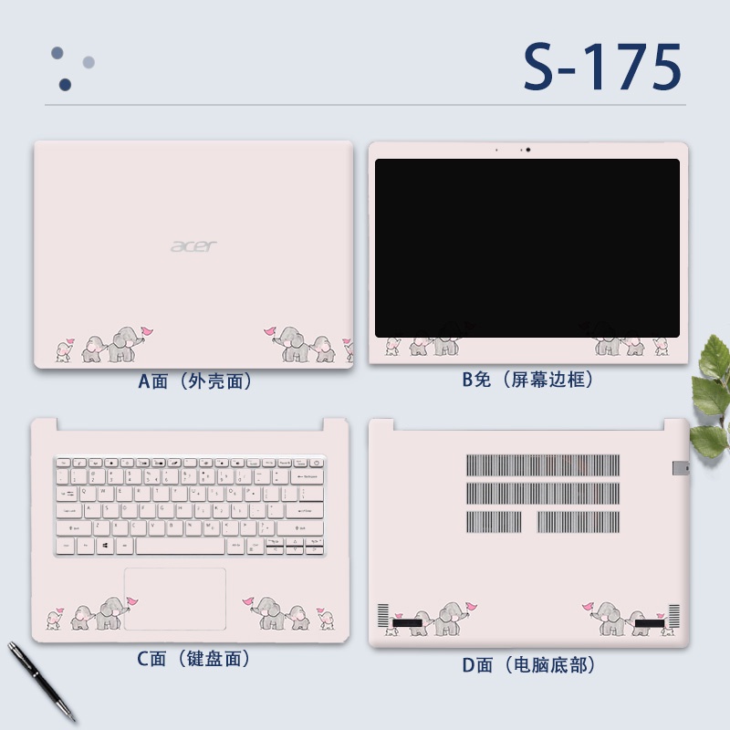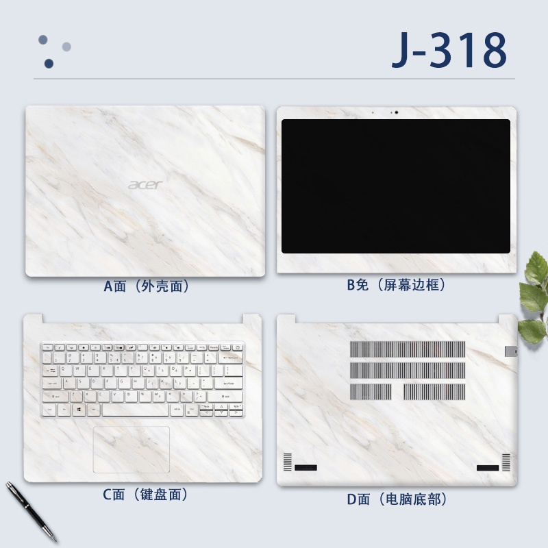 4pcs ABCD 14" Laptop Computer Protective COVER CASE Vinyl Sticker MARBLE WANTERPROOF Cartoon Printed for ACER ASPIRE 3 ASPIRE 5 A514 A514-53 A514-54