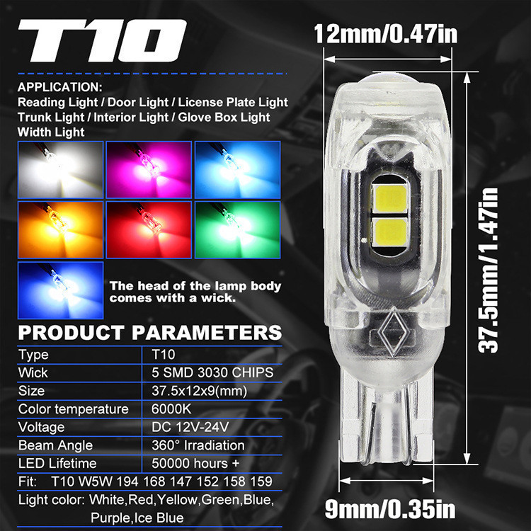 4pcs Flash T10 Led Blinker Signal Light Car Motorcycle W5W 194 Width Indicator with Lens