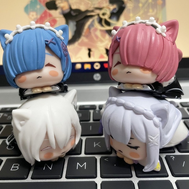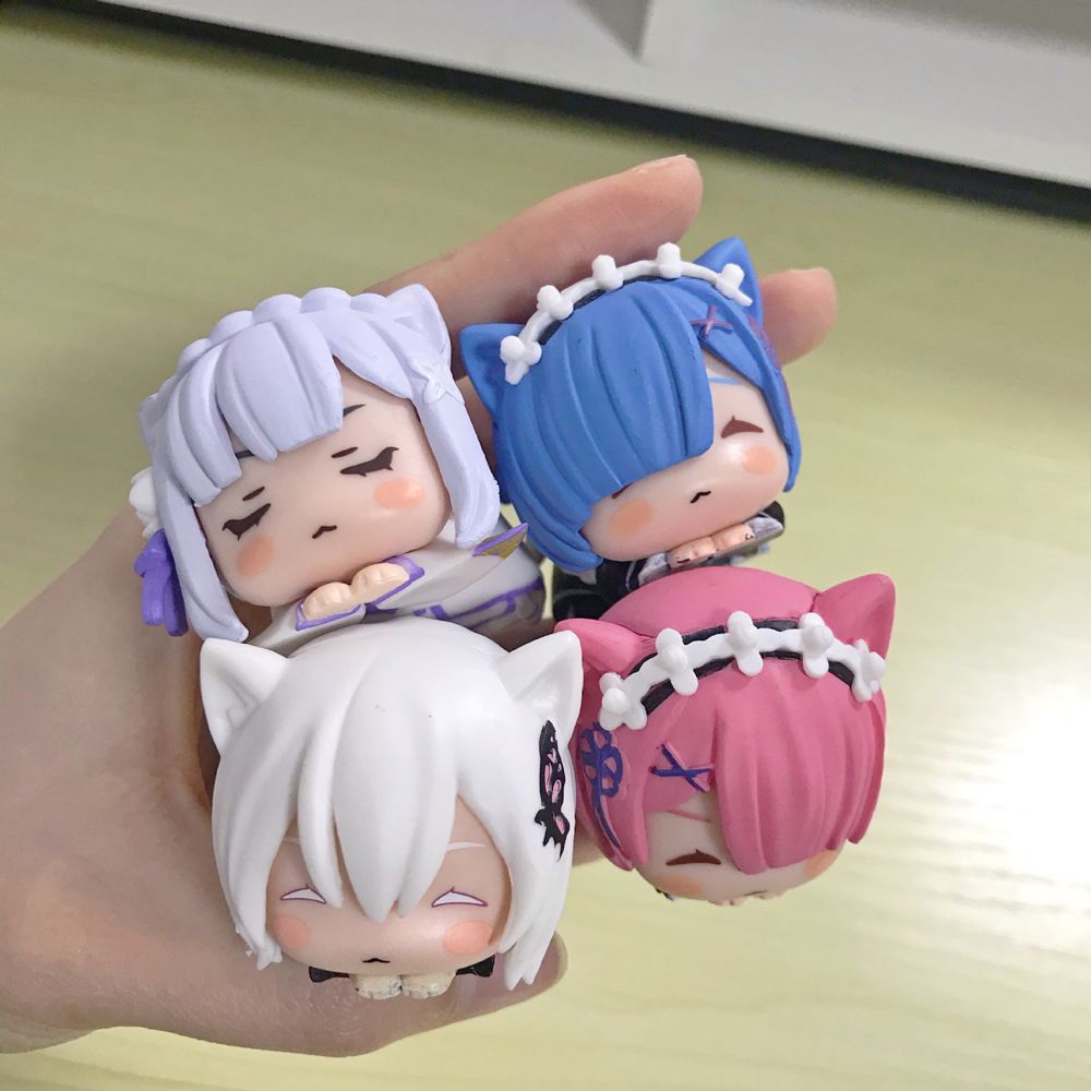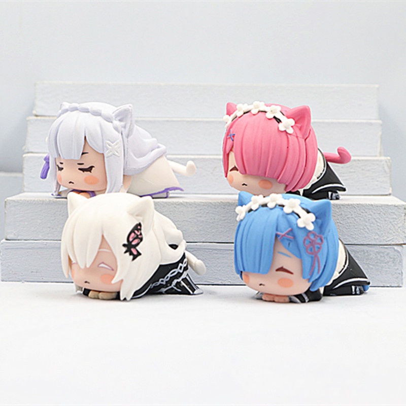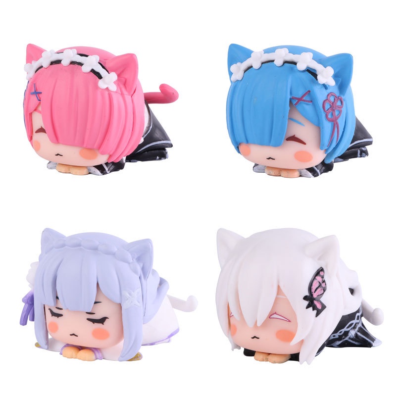 4pcs/Lot Mini Sleep Cat Rem Action Figure Anime Re:Starting Life From Zero In A Different World PVC Cute Figurine Manga Kawaii Collection Toys