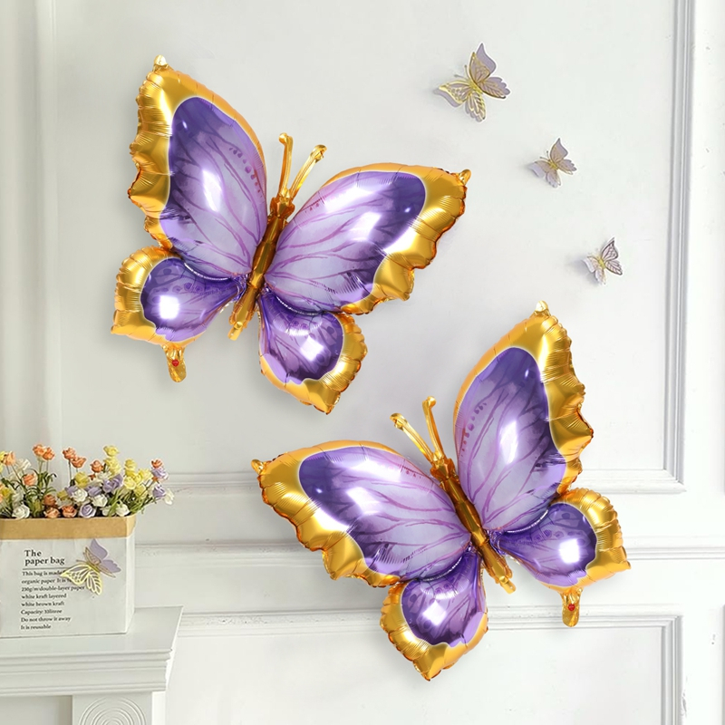 4pcs Pastel Purple Pink Butterfly Balloon Butterfly Design Foil Balloons Butterfly Decor Accessories Birthday Wedding Baby Shower Party Needs