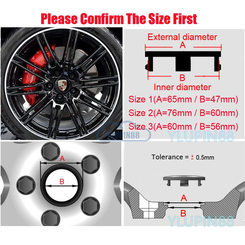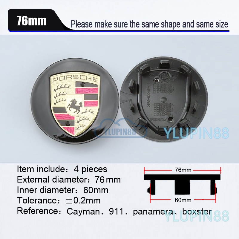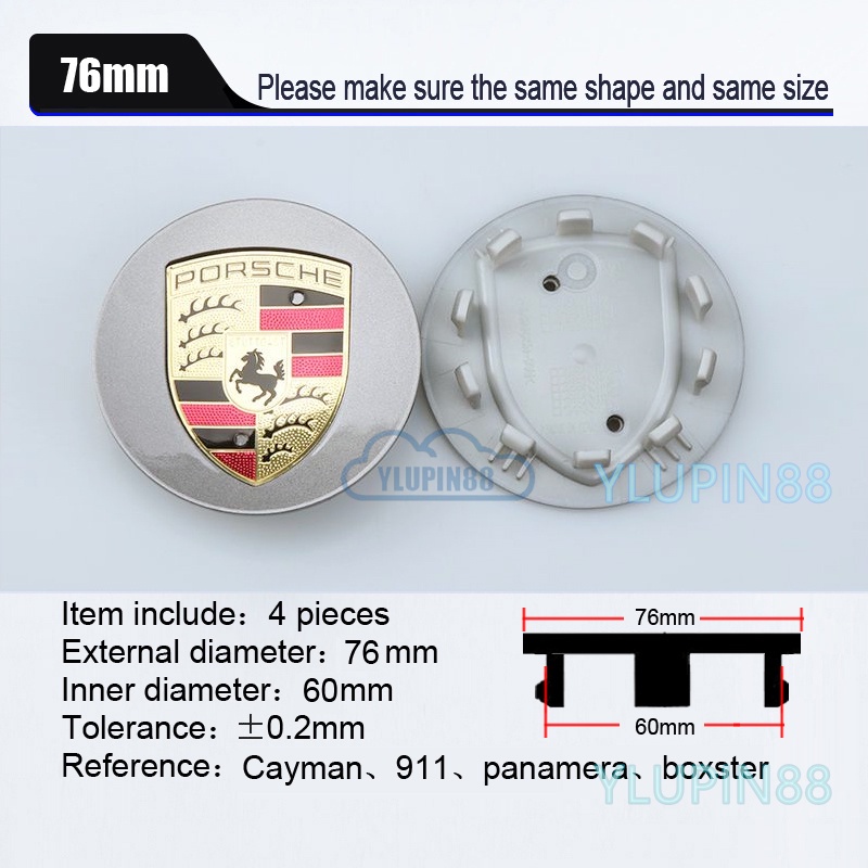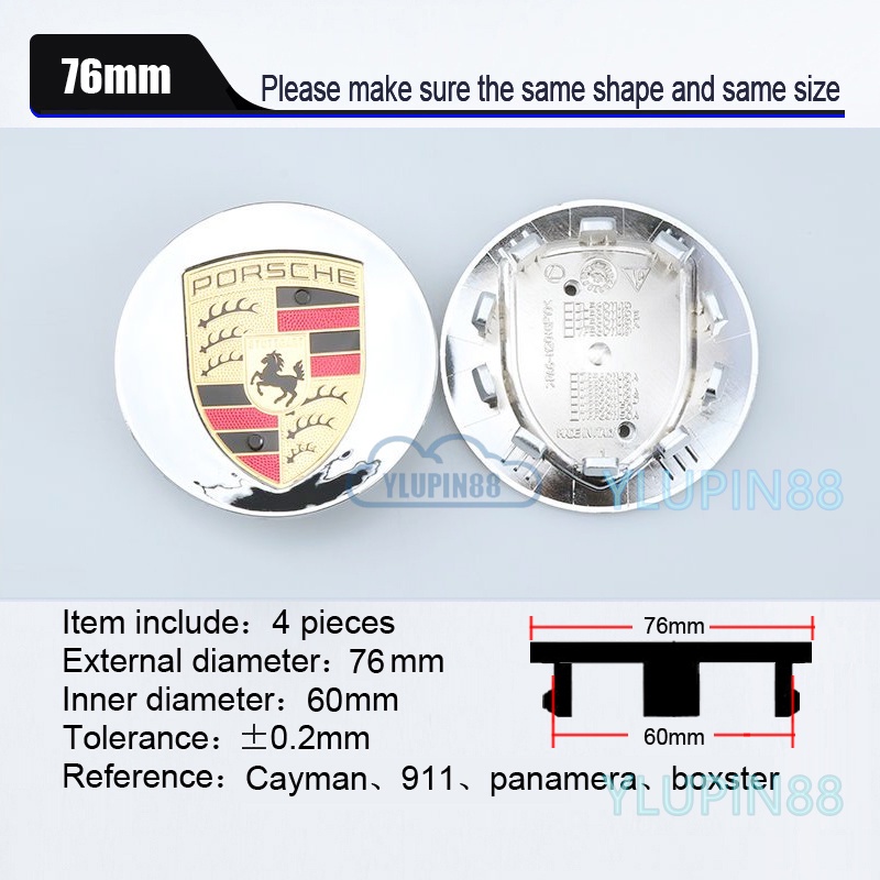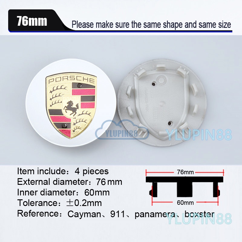 4pcs Porsche Car Wheel Center Hub Caps Cover 60 65 76mm Auto Emblem Badge Wheel Rim Hub Cap Sticker Deacls Trim Car Care Accessories For Porsche Macan Panmaera Boxster Cayenne 911