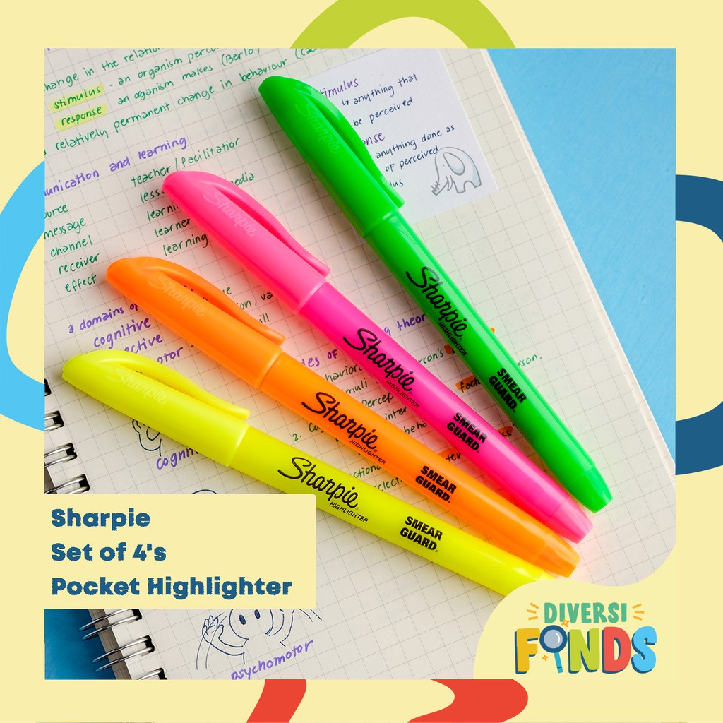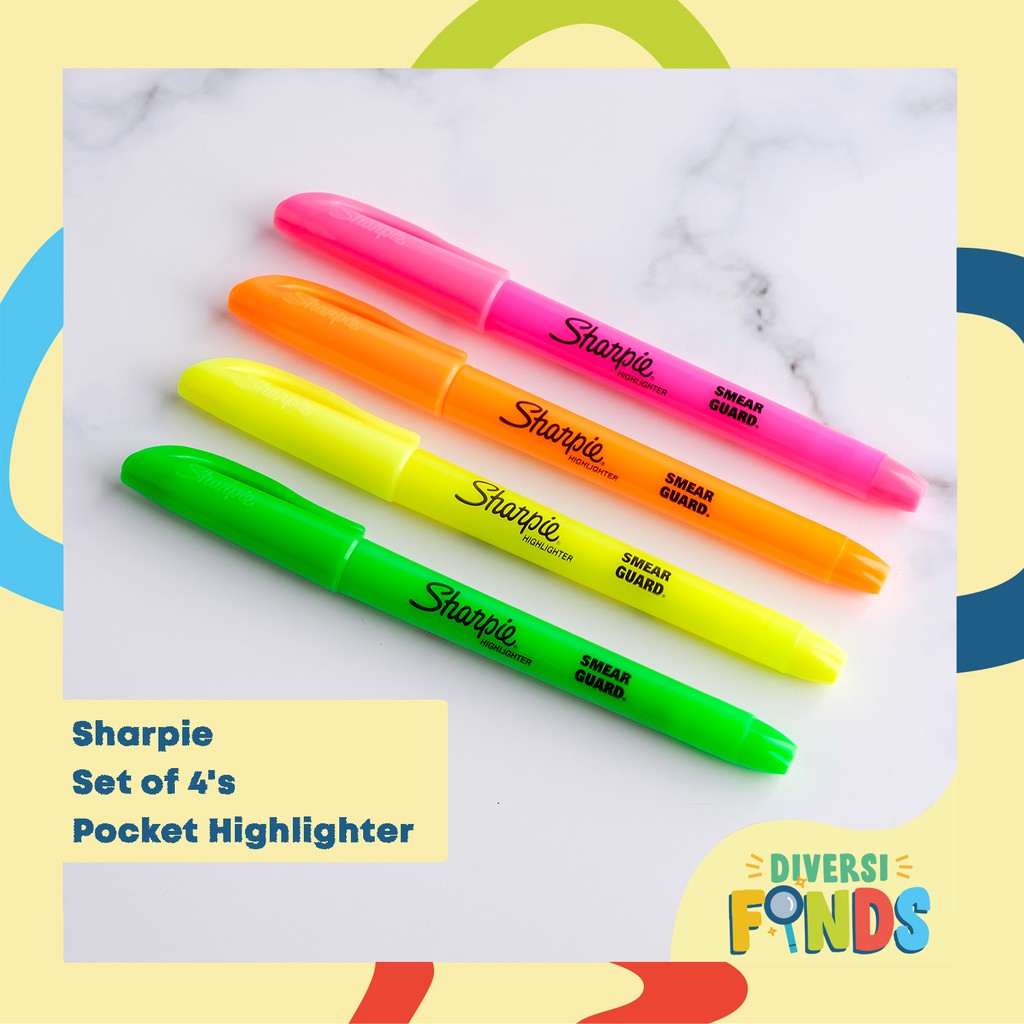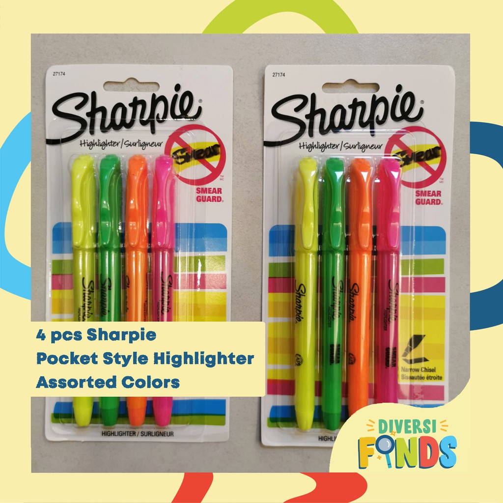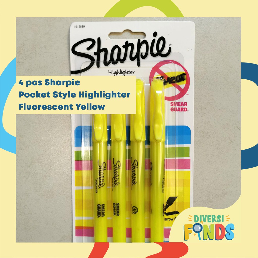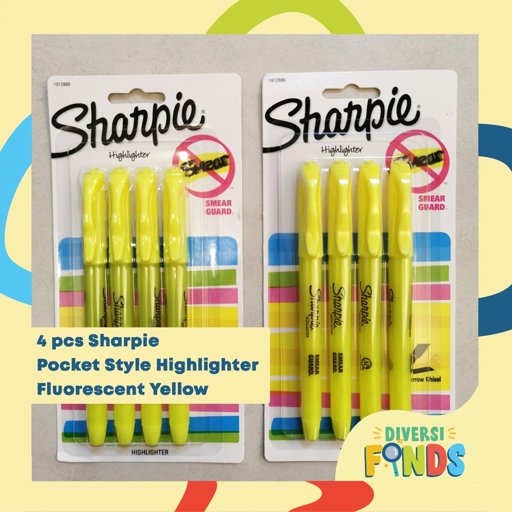 4pcs Sharpie Pocket Style Highlighter in Yellow or Neon Colors Assorted