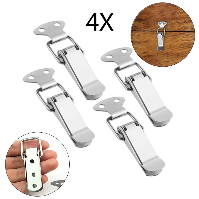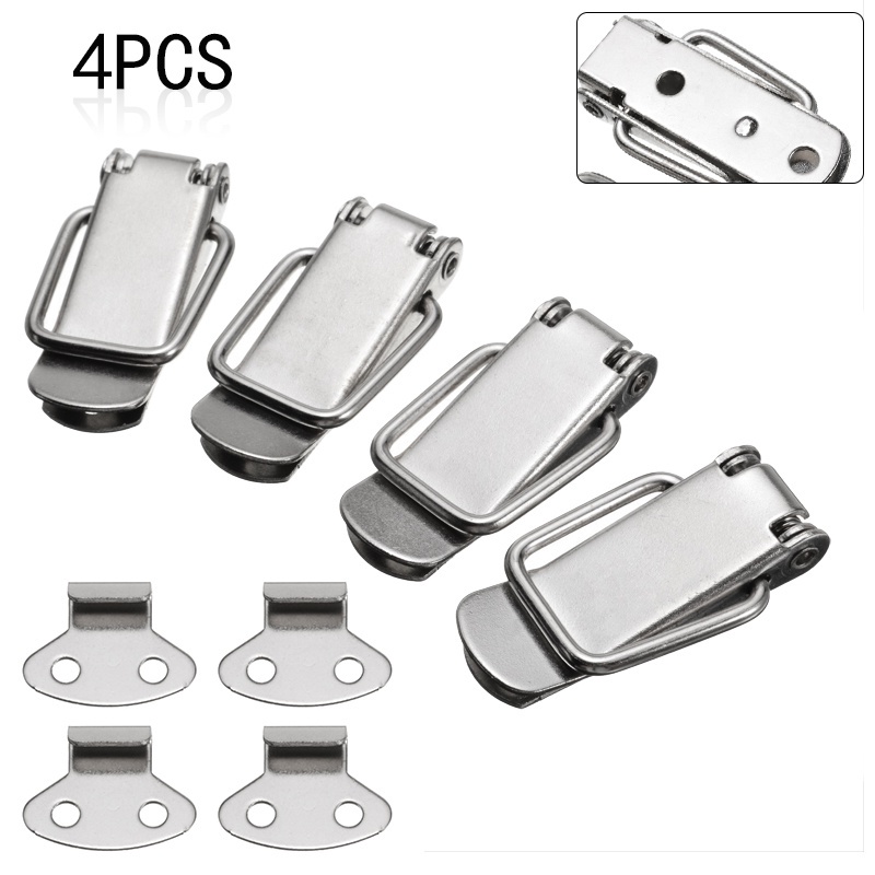 4pcs Stainless Steel Silver Latch Catch Clamp Clip Spring Lock Hasp Box Cabinet gogohomemall2