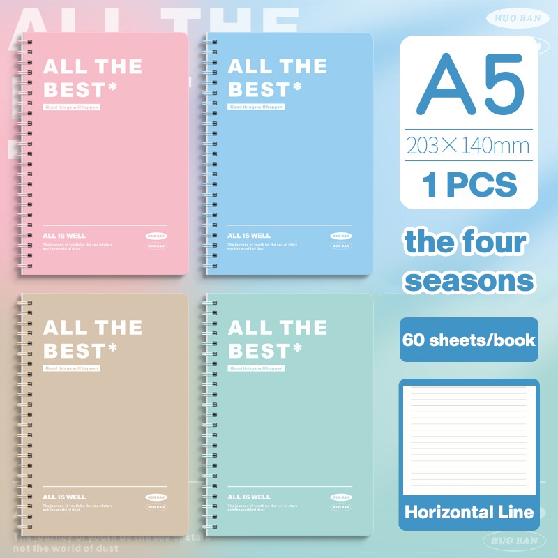 4pcs Thick A5 Spiral Spring Notebook For High School Loose Leaf Notebook Aesthetic Notebook 60 Sheet