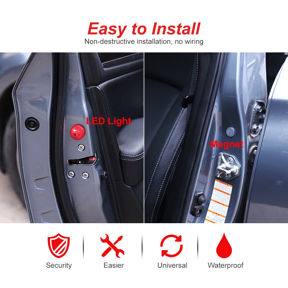4pcs Universal LED Car Opening Door Safety Warning Anti-collision Lights Magnetic Sensor Strobe Flashing Alarm Lights Parking Lamp
