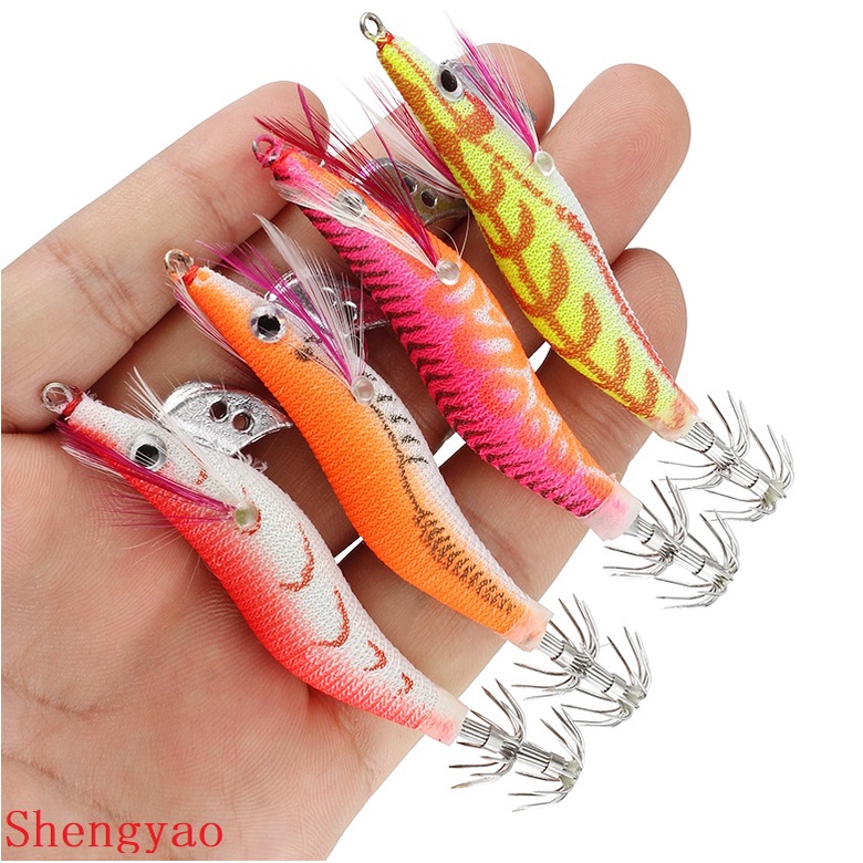 4pcs/lot Artificial Luminous Shrimp Fishing Lure 3D Eyes Bass Bait 8.5cm 7.3g Freshwater Luminous Saltwater Squid Jigs