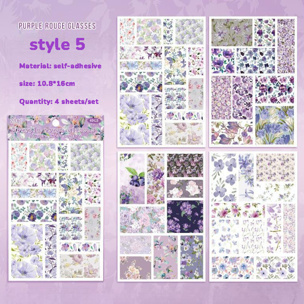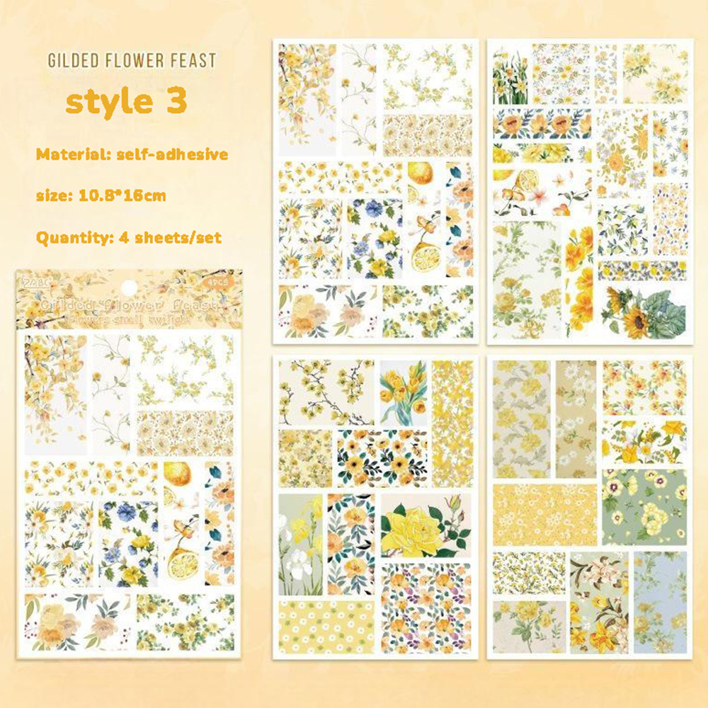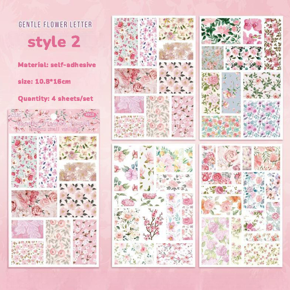 4pcs/pack Flowers Stickers DIY Scrapbook Album Handbook Decorative Material Stickers Stationery