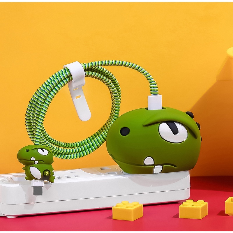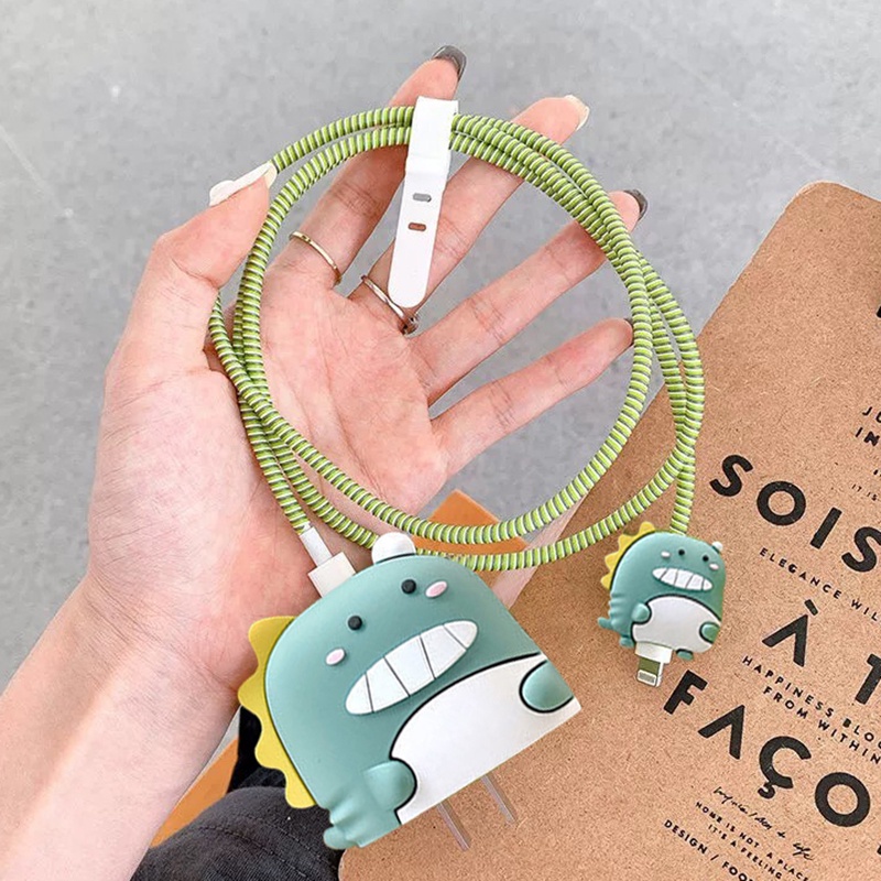 4pcs/set Cute Cartoon Silicone Charging Cable Protector Charger Protector Cover Compatible for iP 18W/20W Charger