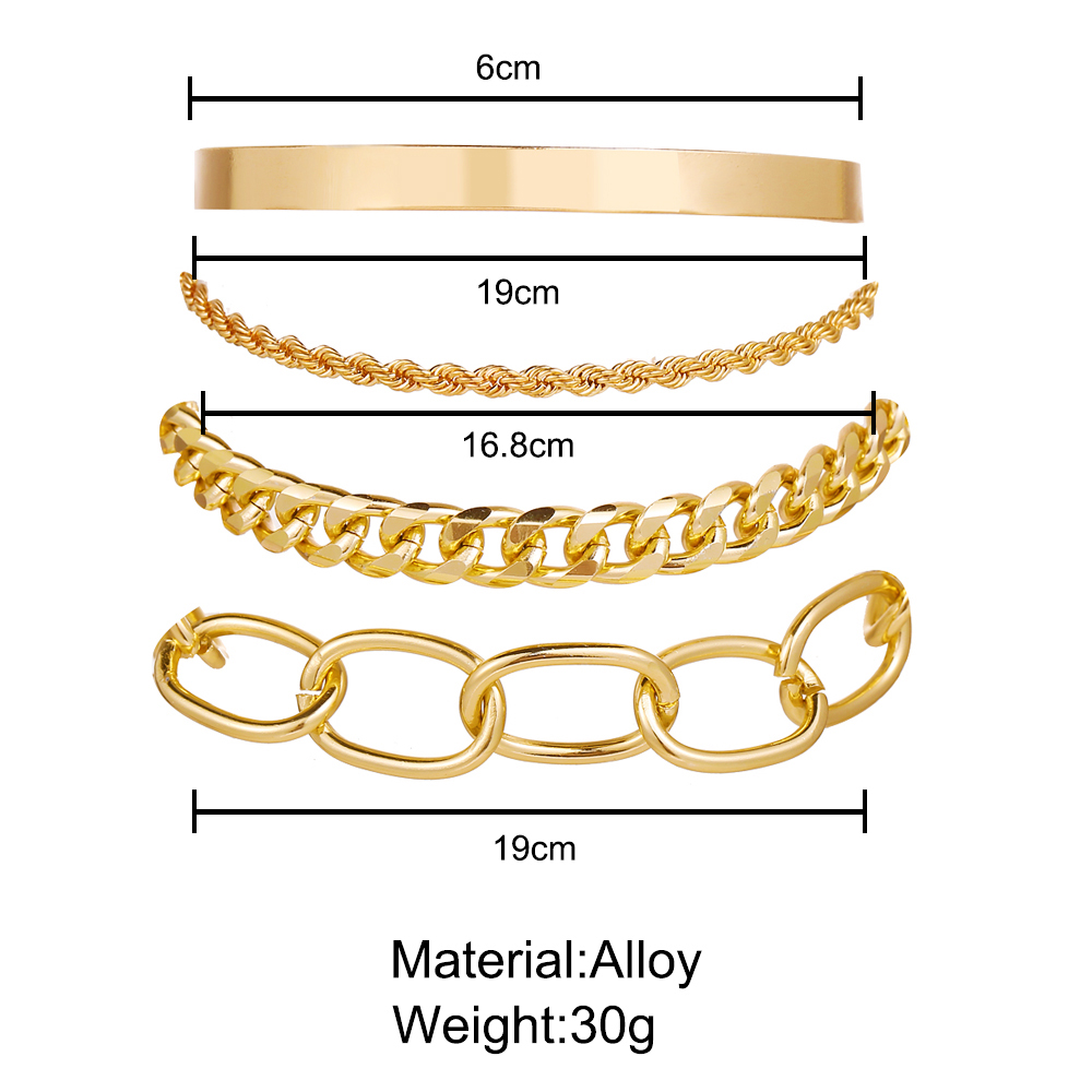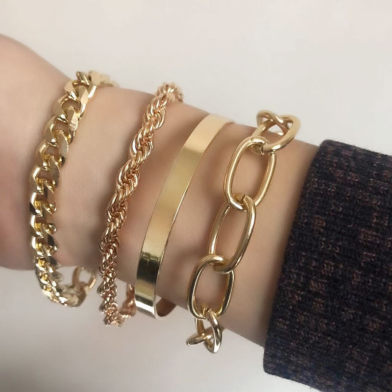 4pcs/set Retro Fashion Thick String Chain Gold Bracelets Personality Bracelet Women