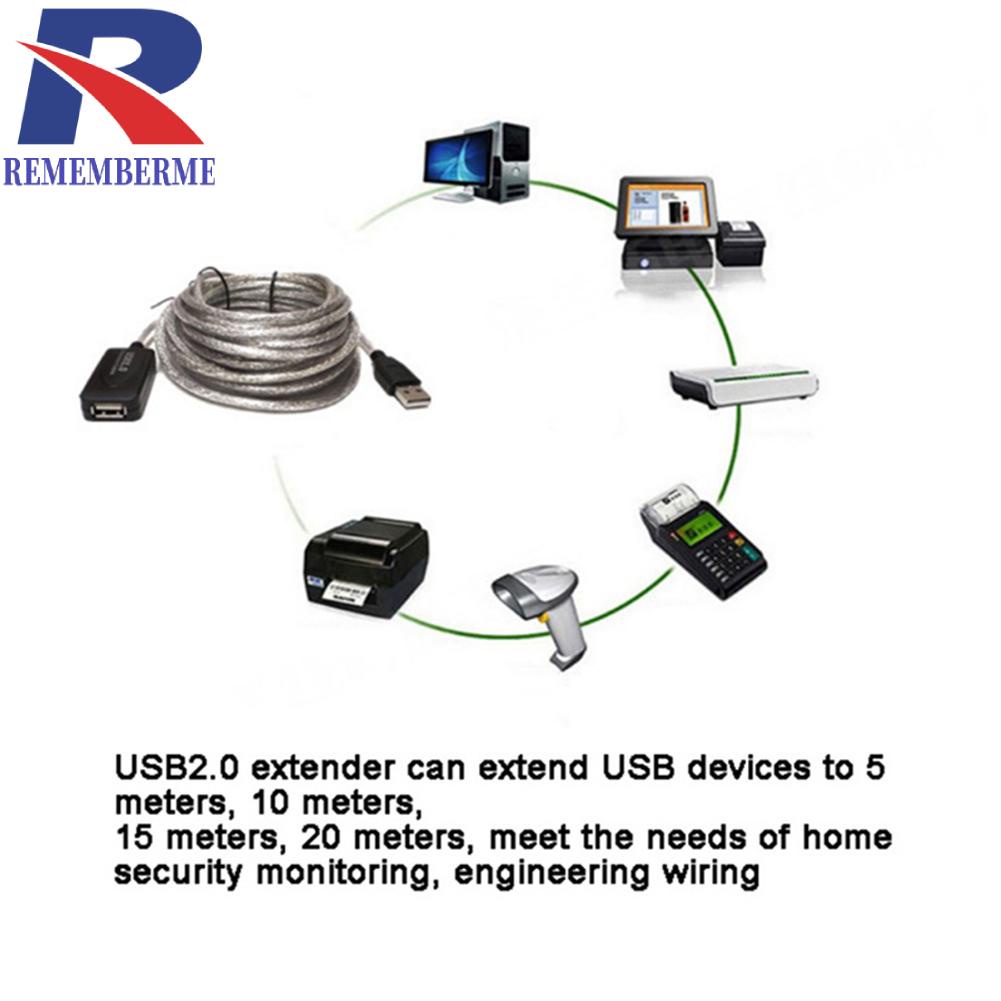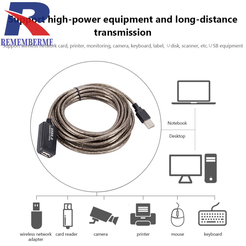 5/10/15/20m USB 2.0 Extension Cable Male to Female Active Repeater Extender Cord