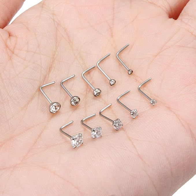 5/10/20Pcs Stainless Steel Nose Stud Set 1.5-3mm Crystal Nostril Piercings Round Ball L Shape Nose Piercings Body Jewelry