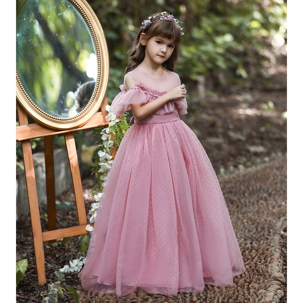 5-14 Years Princess Teen Girls Off Shoulder Formal Dress Flower Girl Dress for Wedding Evening Party Long Gown for Kids