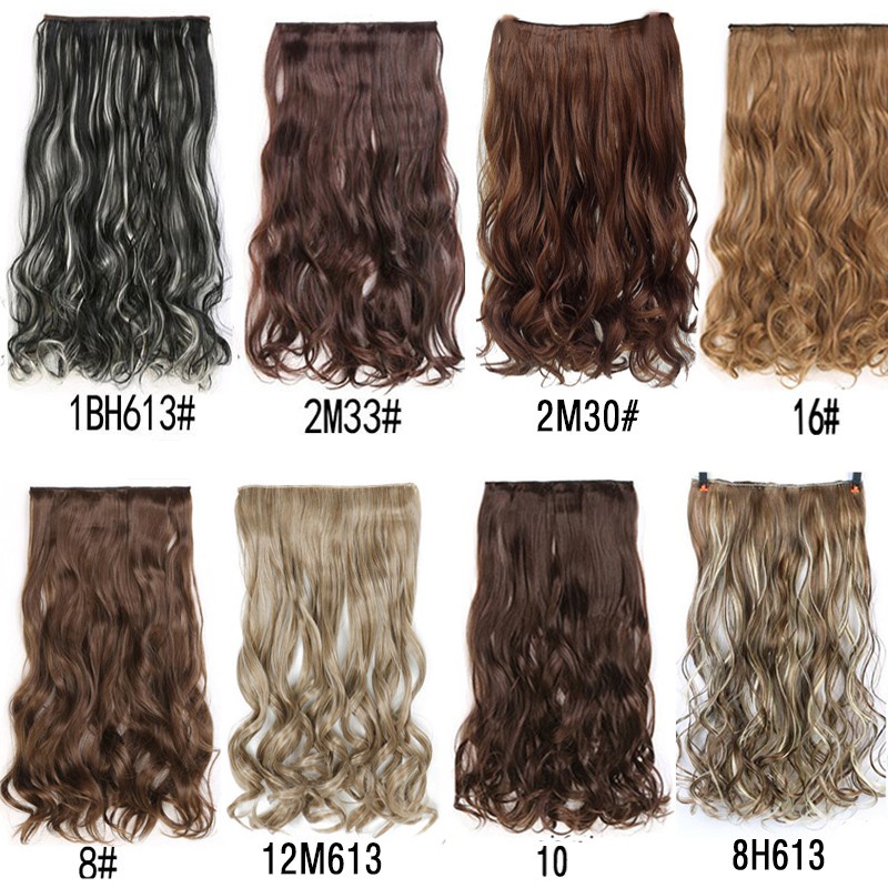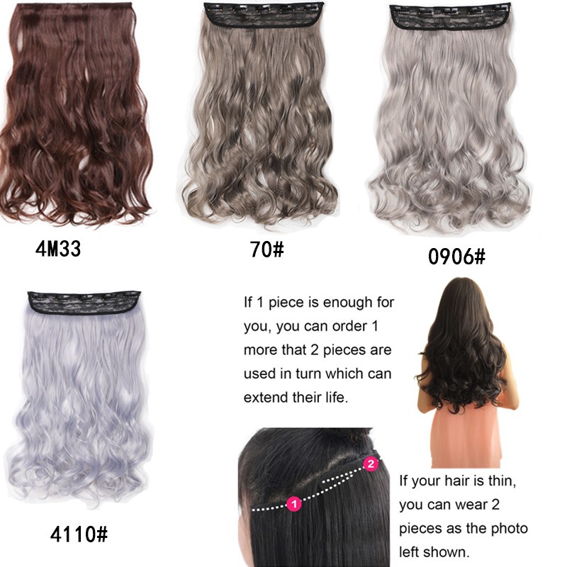5 Clip 22 inches Natural Synthetic Long Wavy Hairpiece Clip In Hair Extensions Wigs