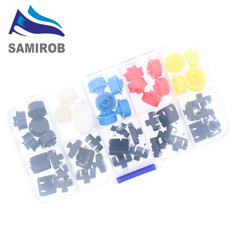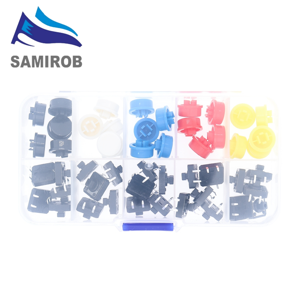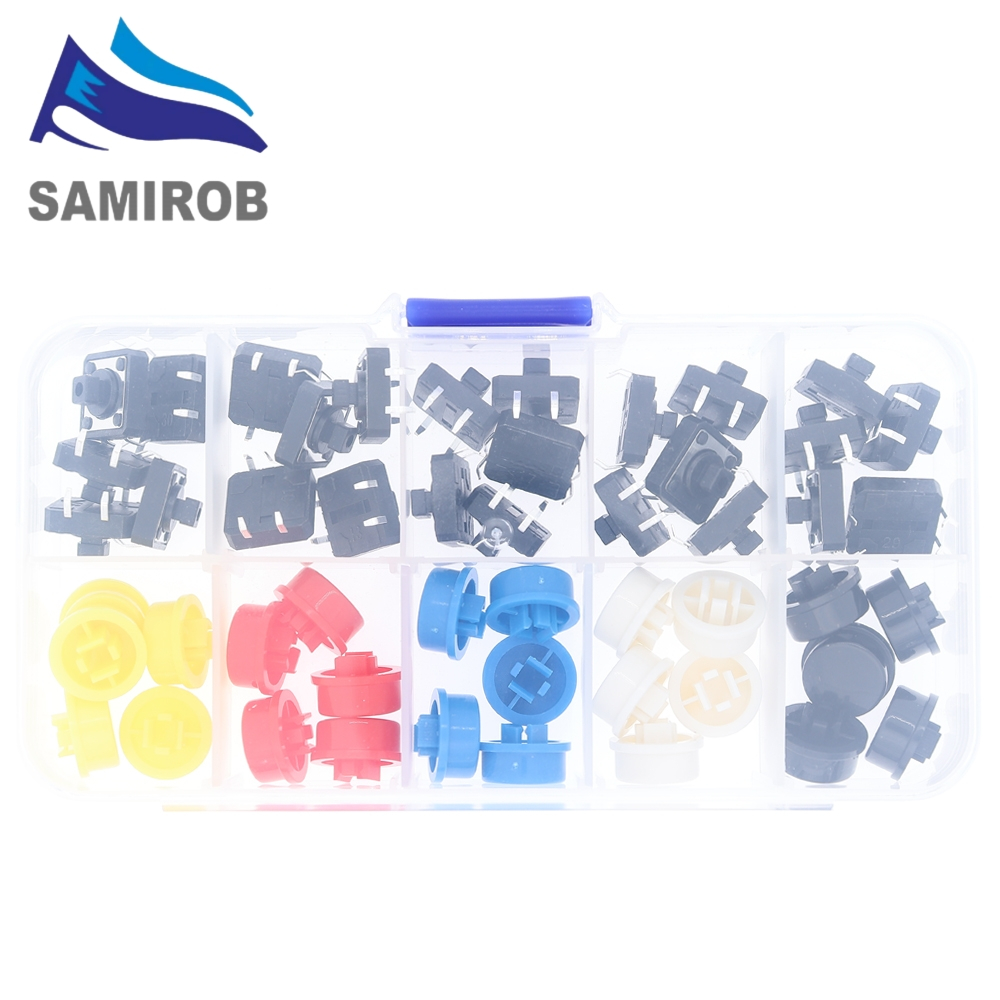 5 Colors 12*12*7.3MM Micro Switch Button Tact Cap Tactile Push Button Switch Momentary 25Pcs/Set