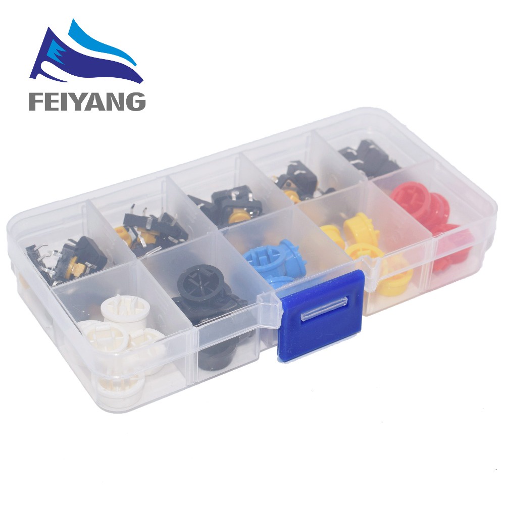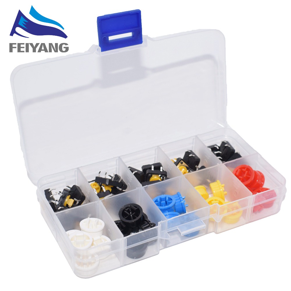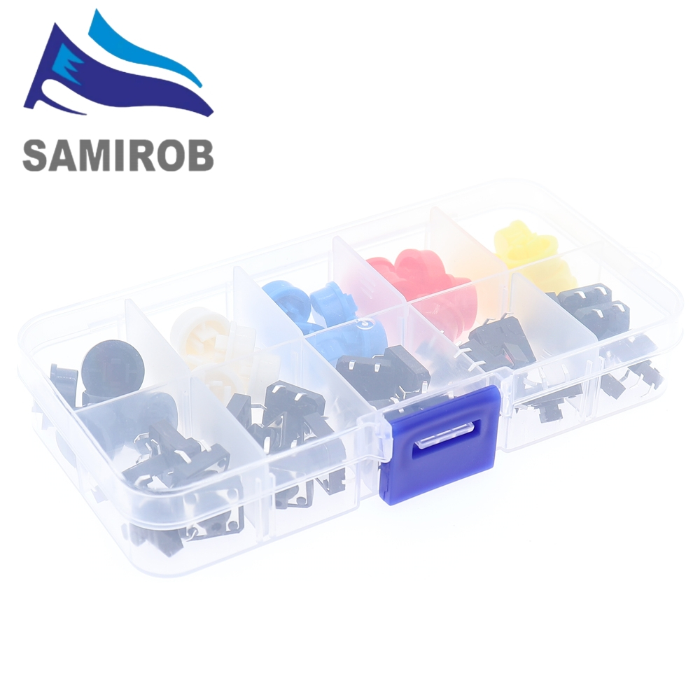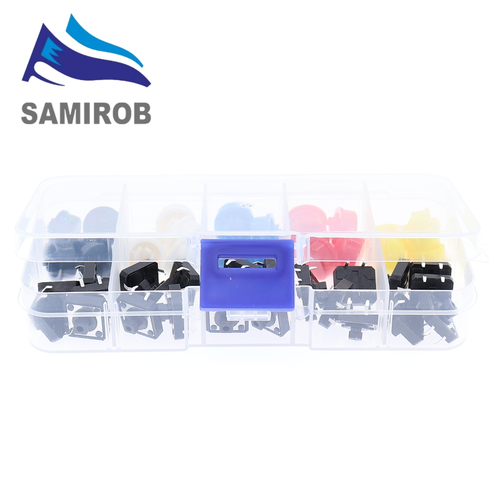 5 Colors 12*12*7.3MM Micro Switch Button Tact Cap Tactile Push Button Switch Momentary 25Pcs/Set