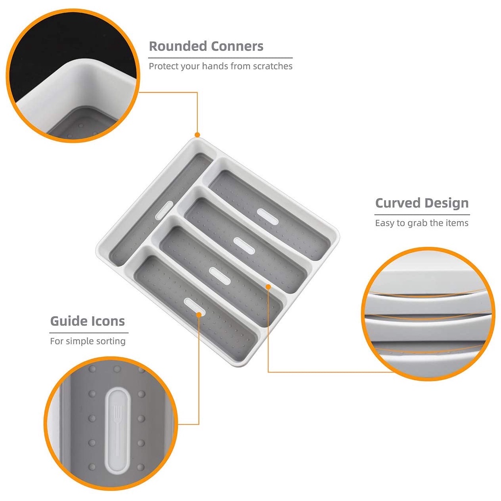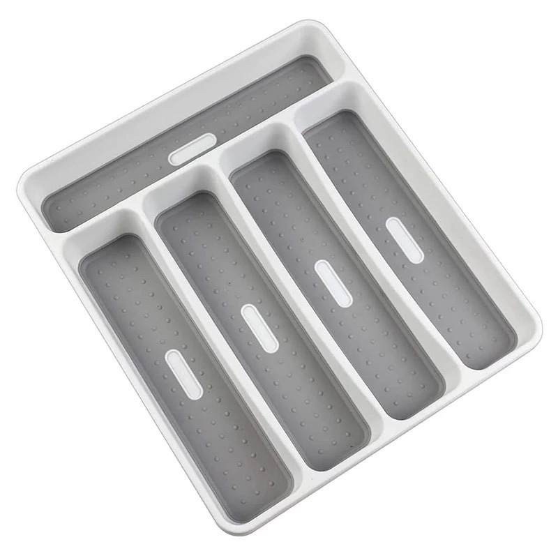 5 Compartments Plastic Kitchen Drawer Organizer Silverware Storage Tray for Utensil Cutlery Flatware